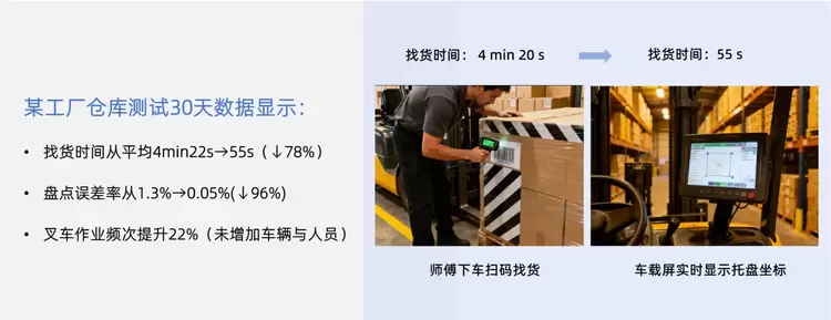 在地堆频繁变动区域,动态更新地图,找货时间减少70%以上;