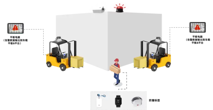 人车防撞:当行人进入预设危险区域,立即触发声光报警,提醒司机与周边人员;
