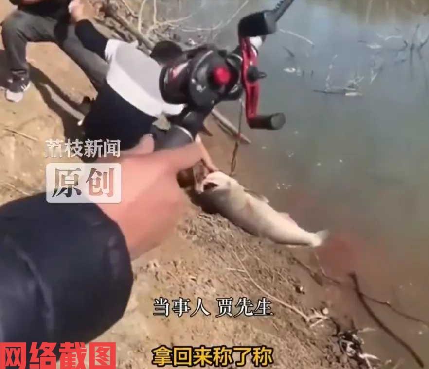 河北邢台有男子在野外池塘中钓鱼。 这天男子突然感觉到鱼竿的动静不小,让他心头一