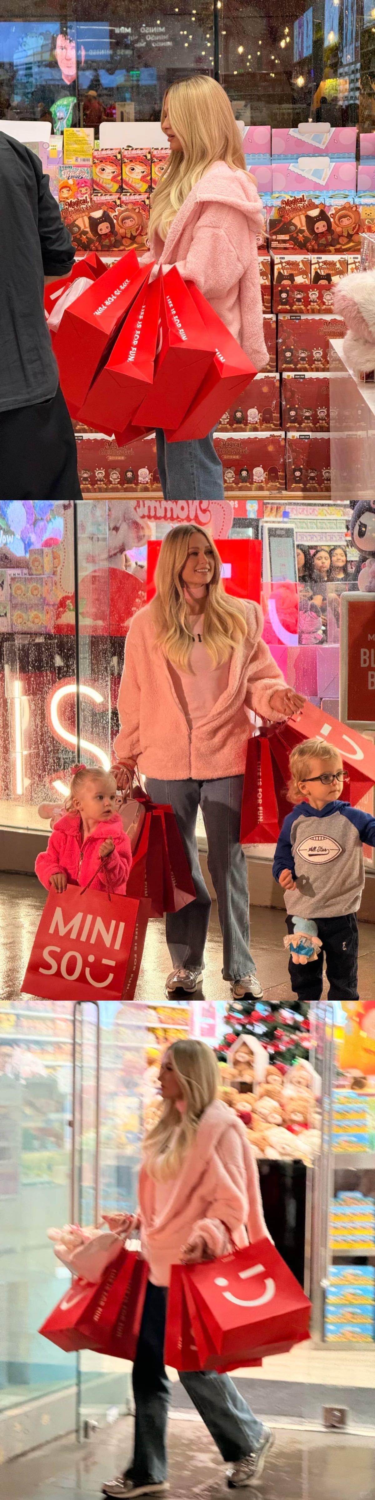 起猛了!大小姐一身粉嫩嫩带娃逛快乐老家,妥妥人间芭比啊~ 四个保镖拎着大包小包跟在后面,小票长到离谱,这扫货阵仗也太酷了!