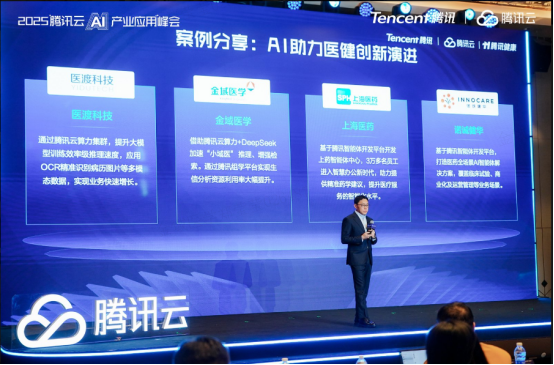 随着人工智能迈入大模型时代,其与实体经济的深度融合正不断催生产业变革新模式。2025年5月,由腾讯云主办的「2025AI产业应用峰会」在北京盛大举行。本次大会以“智汇云端·AI共赢”为主题,聚焦AI产业化落地的最新趋势与实践路径,吸引众多来自医疗、金融、制造等重点行业的代表出席交流。作为医学检验行业的代表企业,金域医学副总裁受邀参会,并围绕“医检人工智能与数据科学建设进展”进行主题分享,展示了金域医学在推动AI技术实战落地、构建智能医检新范式方面的前沿探索与阶段成果。