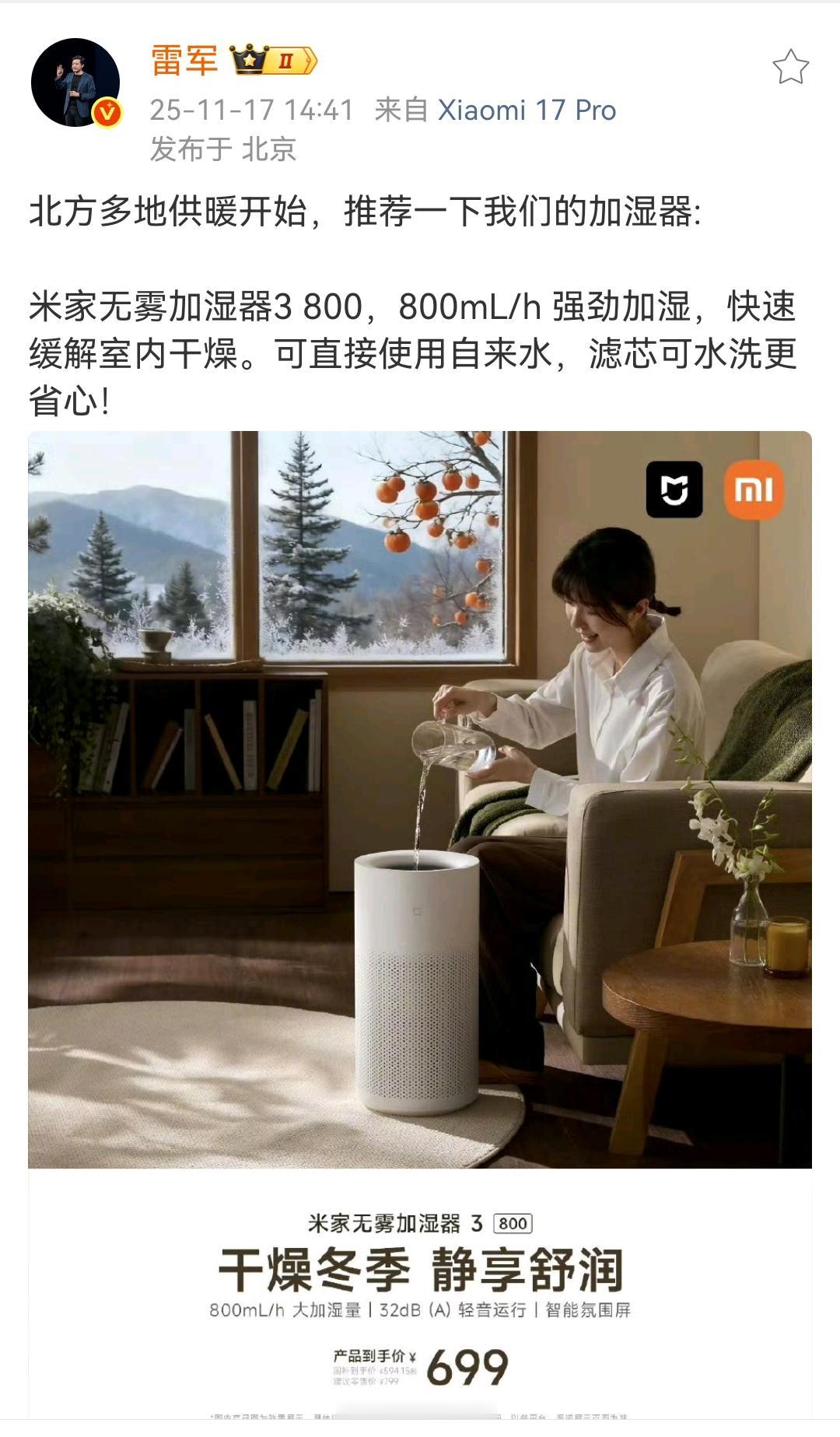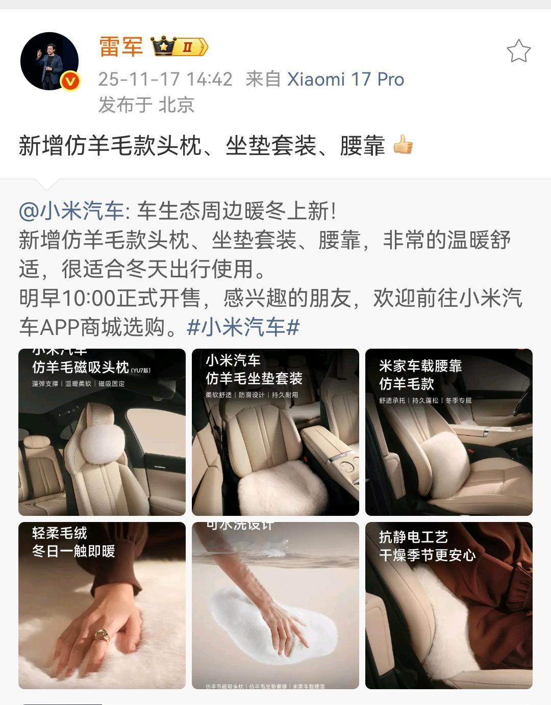 雷军今天又恢复了带货!向网友推荐起了小米的颈枕、加湿器、坐垫套装! 这就是亲自下场带货与小米的产品进行深度绑定,通过雷军这个人来让大家认识到更多的小米产品,雷军的账号关注度非常的大,比小米的官方账号关注度大多了,而且还非常容易上热搜。 在雷军的这个账号上发布各种优惠信息以及新品信息,获得的流量是普通广告没有办法做到的。 大家是怎么看的?欢迎评论区留言。