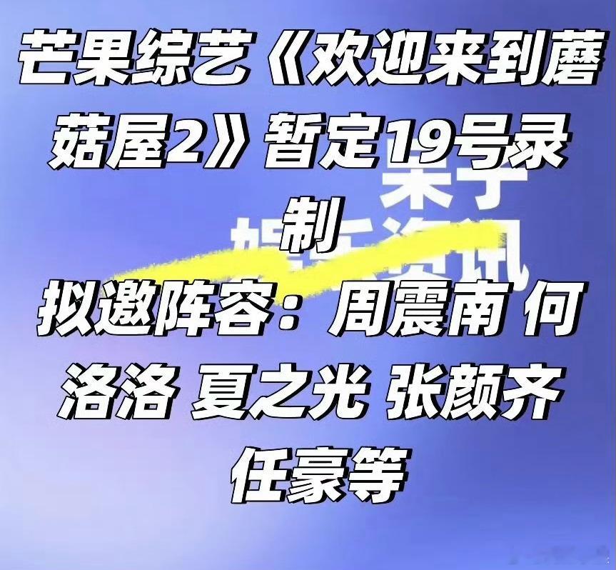 欢迎来到蘑菇屋第二季嘉宾阵容:周震南、何洛洛、夏之光、张颜齐、任豪等R1SE成员,是谁要幸福了!!!