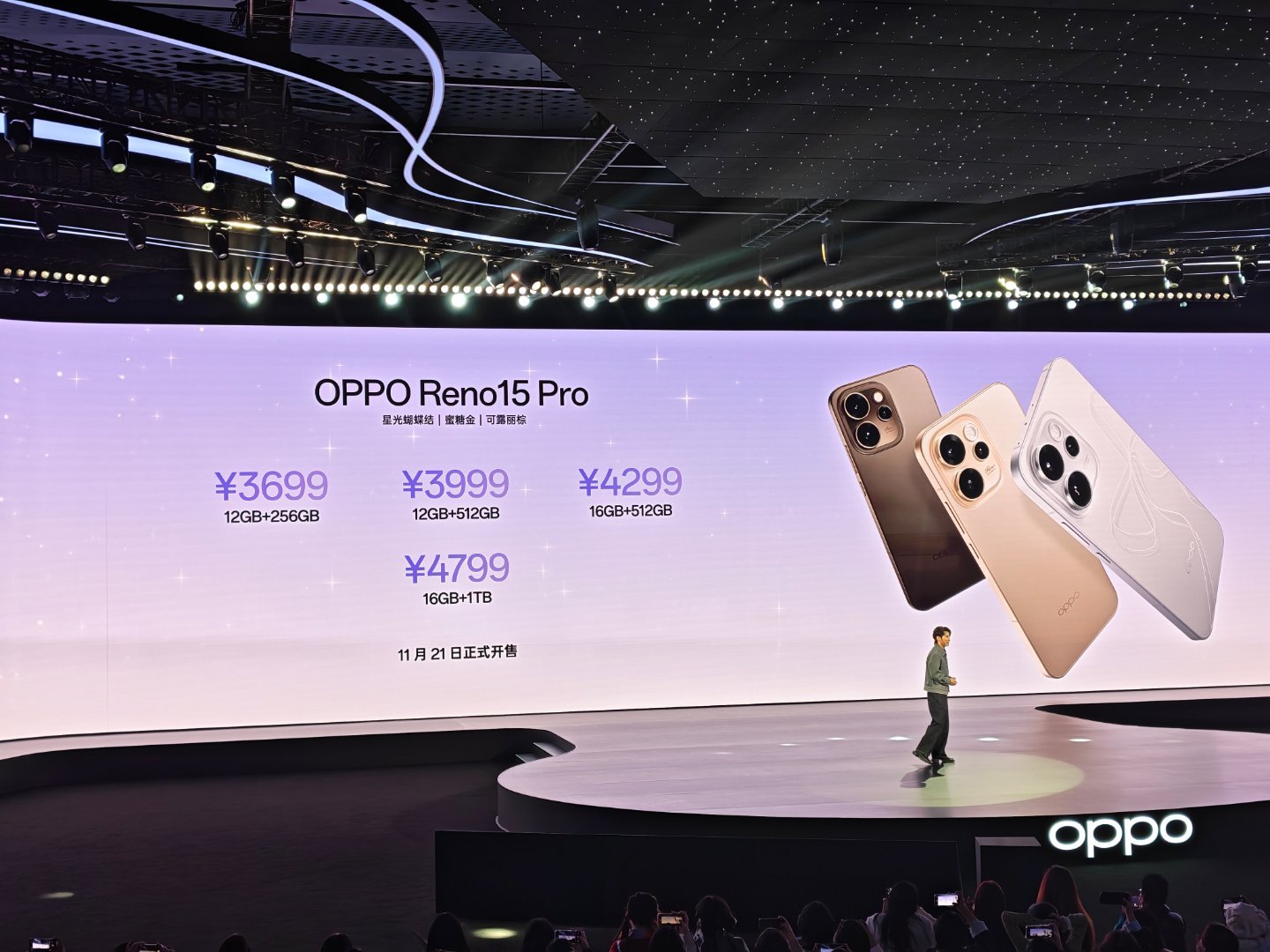 Reno15 系列售价出炉 标准版12+256 299912+512 329916+256 329916+512 359916+1T 3999Reno15 Pro12+256 369912+512 399916+512 429916+1T 4799 11 月 21 日正式开售