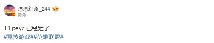 直播吧11月17日讯今日,T1官方正式冠军FMVP选手Gumayusi离队,随后爆料人“恋恋红茶”更博透露T1新AD选手:peyz!已经定了!