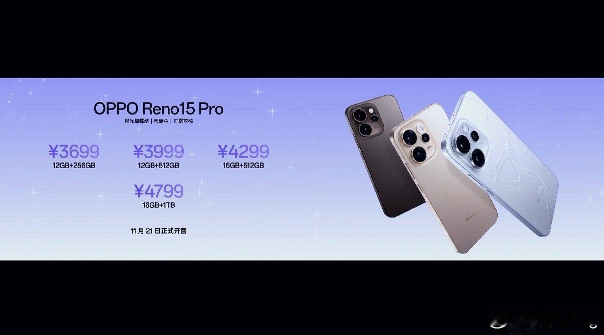 OPPO Reno15系列价格来了!OPPO Reno15售价:2999元起;O