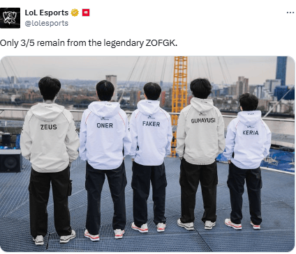LOL官推:传奇五人组ZOFGK只剩下三位了