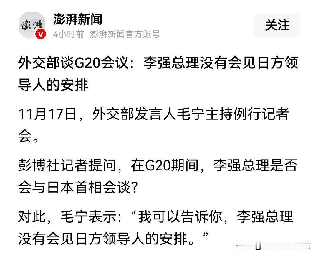 日本外务部金井正彰上门解释高市错误言论。 中国再次让世界看到了什么是大国风范! G20会议未安排和日本方面的会谈,再次传达我们的态度! 日本方面又想用他们以前的惯用伎俩,一边私下搞着小动作,一边上门陪你喝茶聊天,放松你的警惕,最后出其不意,给你致命一击。 当年他们偷袭珍珠港,是不是也用的这样的方式和策略,表面上告诉你,我们井水不犯河水,我们都是好朋友,也绝对不会对你有想法,背地里搞一个暗度陈仓,来个突然袭击,打你个措手不及。 当年的美国是多么不愿意卷入这场战争,一战时他们已经挣的盆满钵满,二战也想如法炮制,结果日本不讲武德,直接搞个偷袭,让他们不得不参与进来,这也是后来对日本报复性轰炸,和严厉制裁的主要原因吧,一次性把他们打怕了,几十年过去都心有余悸。 这个金井正彰也挺尴尬,自己的首脑嘴硬不改口,非要自己跑过来解释,就好像两个人骂了半天,派个小弟过来和你说,我就骂你了,但是我们还是好朋友一样。 能让他们来会谈,是告诉全世界,我们会谈的大门和通道一直打开着,想谈你就来,给你谈的机会。至于你们有没有诚意,那是你们的事儿。 而G20不安排相关会谈,则像是一个人被另外一个人冒犯了、严重损害了利益,自己不敢出面道歉,让别人组个局来聊这事儿,一点诚意都没有,也就没什么好谈的了。 我们现在的外交,真的是张弛有度,游刃有余,主动权完全掌握在自己手里,那些纸老虎们,也只能承一时嘴快而已,我们随便一个反制,就够他们难受半年!