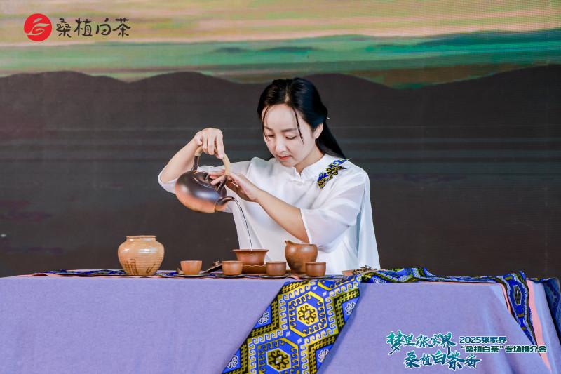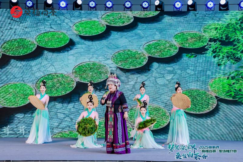 文化赋能让茶香更显醇厚。音诗画推介环节通过情景演绎、茶艺展示与民歌演唱的巧妙结合,诉说着桑植这片红色土地上的白茶故事。《桑植白茶甜心中》《桑植白茶》等民歌联唱登场时,质朴悠扬的旋律引发全场共鸣,将现场气氛推向高潮,也让桑植深厚的文化底蕴随茶香一同传递。