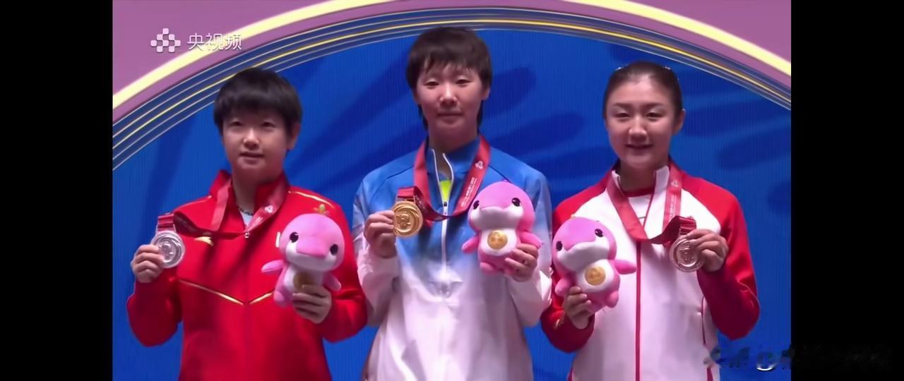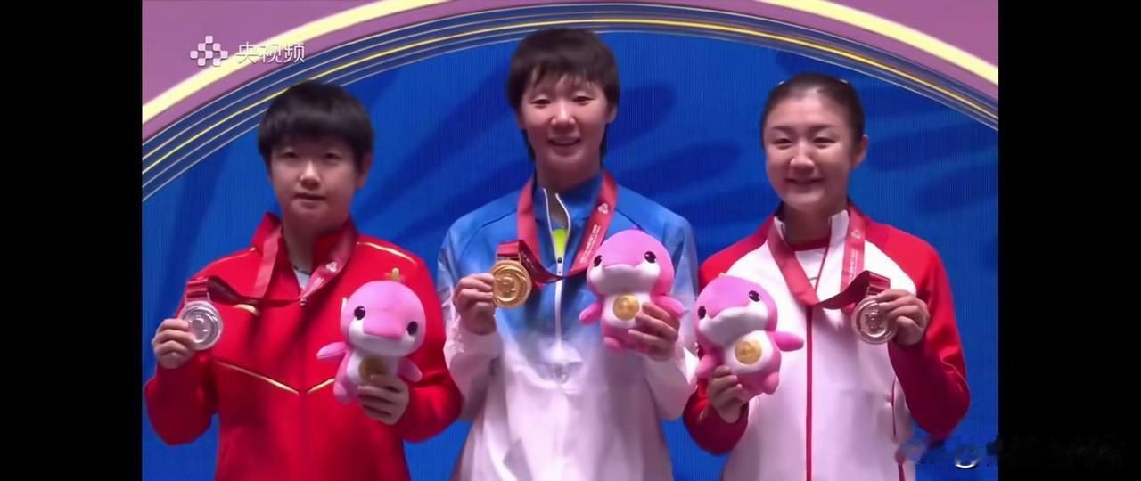 王曼昱卫冕成功 昨天女单决赛开始得太晚,看了一会就休息了。不过,还是很关注这场比赛结果,全运会的金牌含金量太高,其闯关的难度不亚于奥运会,甚至高于奥运会。 一早就看赛况,王曼昱和樊振东一样,卫冕成功,拿到了金牌,孙颖莎输了。 看了这么多场比赛,会发现: 1.孙颖莎和王楚钦这两位混双好搭档能够同时登顶的难度还很大,这次一个是女单银牌,一个是男单铜牌。而炒他们俩cp的人可能会经常失望。 2.女单决赛基本上都是莎莎和曼昱争霸,莎莎的胜率要略高,所以她的积分也最高。如果以10分计,她俩的胜率比应该是6:4,莎莎略占优势。这次曼昱赢了这块份量很重的全运会金牌,时隔4年再次登顶,对曼昱来说,也是对4年职业生涯最好的总结。 3.获得金、银、铜牌的三姐妹王曼昱、孙颖莎和陈梦,也是世界范围内实力居前的三姐妹。竞技体育的残酷之处在于,不管你过去取得多好的成绩,曾经多么荣耀,每次上场都要从零开始,一拍一拍地打到决赛。所以两次取得奥运冠军的陈梦,长时间离开了高强度的训练,此次比赛只拿到了铜牌,半决赛中被王曼昱以大比分4:0淘汰。 4.与孙颖莎同台领奖要有大心脏,莎莎的粉丝不管孙是否拿到金牌,都会热烈地喊着莎莎的名字。王曼昱面对此境,可能都习惯了,自顾自简单整理自己的衣服,等待观众情绪平复下来。