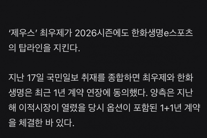 准备集结?!《国民日报》独家报道:Zeus与HLE续约一年