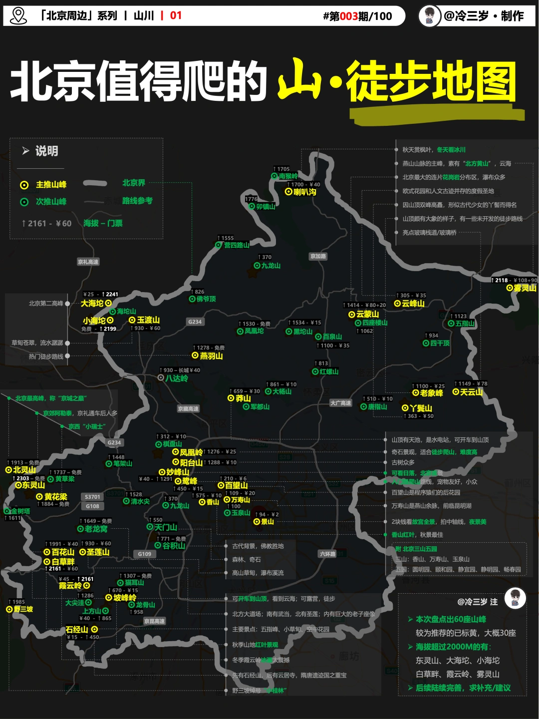怀柔的旅游景点整理完了,供大家参考吧 图1:怀柔景点分布 图2:怀柔公园地图 图3:北京博物馆分布(郊区版,怀柔的不多) 图4:北京跑山地图,怀柔的不少 图5:北京爬山地图 图6:北京寺庙地图 图7-8:北京私汤,温泉酒店地图 北京打算这周末去雁栖湖的,可惜降温大风了[笑哭R][笑哭R] 此外怀柔不仅风景好,也有挺多不错的民宿,感觉城市建设还是很可以的,也很干净。[点赞R][点赞R]