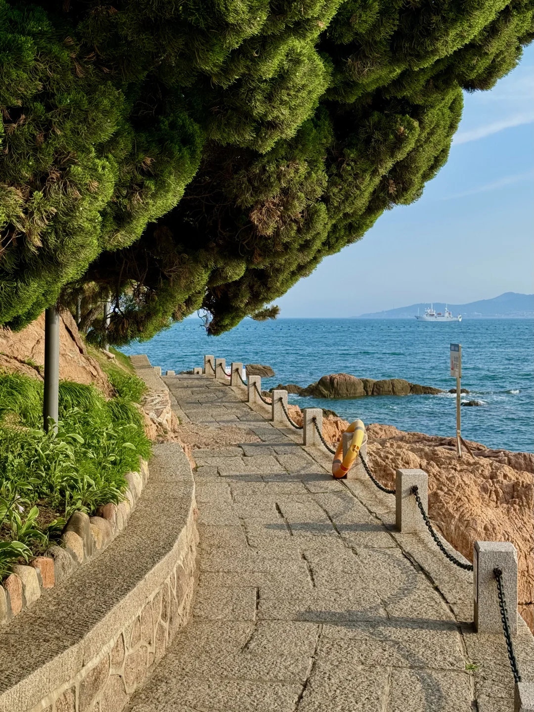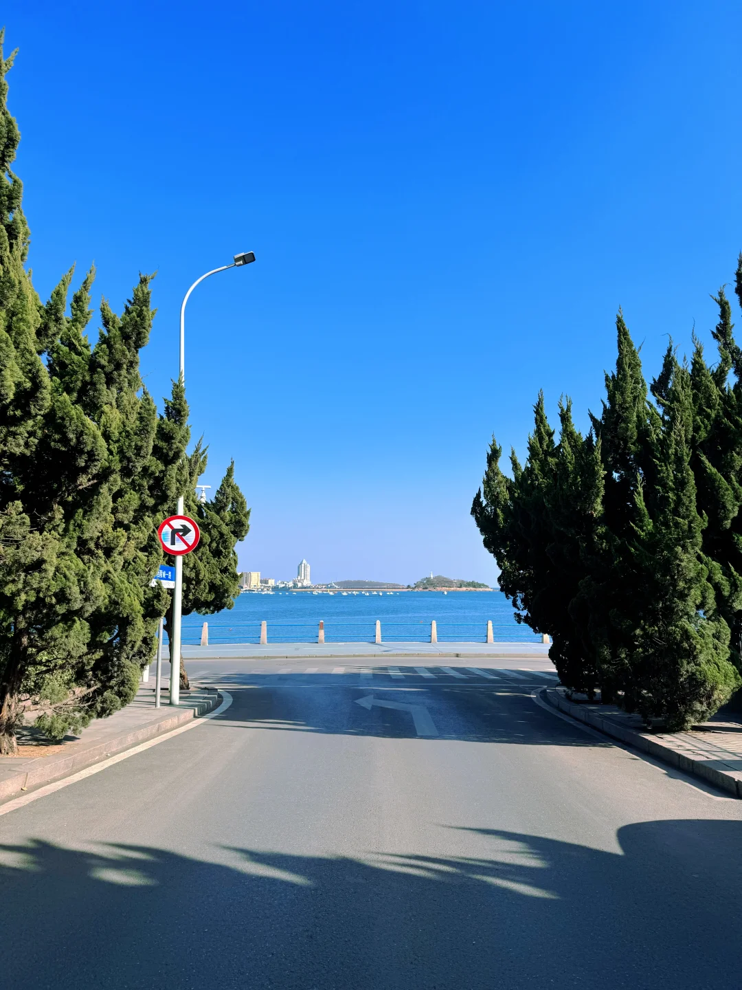 公路的尽头就是大海🌊呀!很火的开向大海的公交就在这里,两侧常绿龙柏环绕像极了漫画