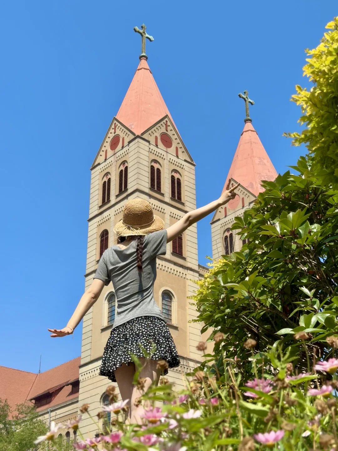 从侧面斜坡仰拍是坠佳机位,会路过安娜别墅,必拍青岛两个大字,里面有粉色瀑布🌸也很出片,但是需要一杯咖啡的💰