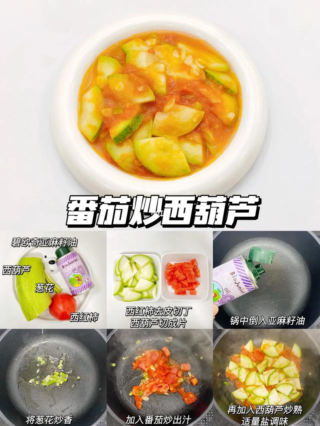 番茄、西葫芦、葱花、碧欧奇亚麻籽油