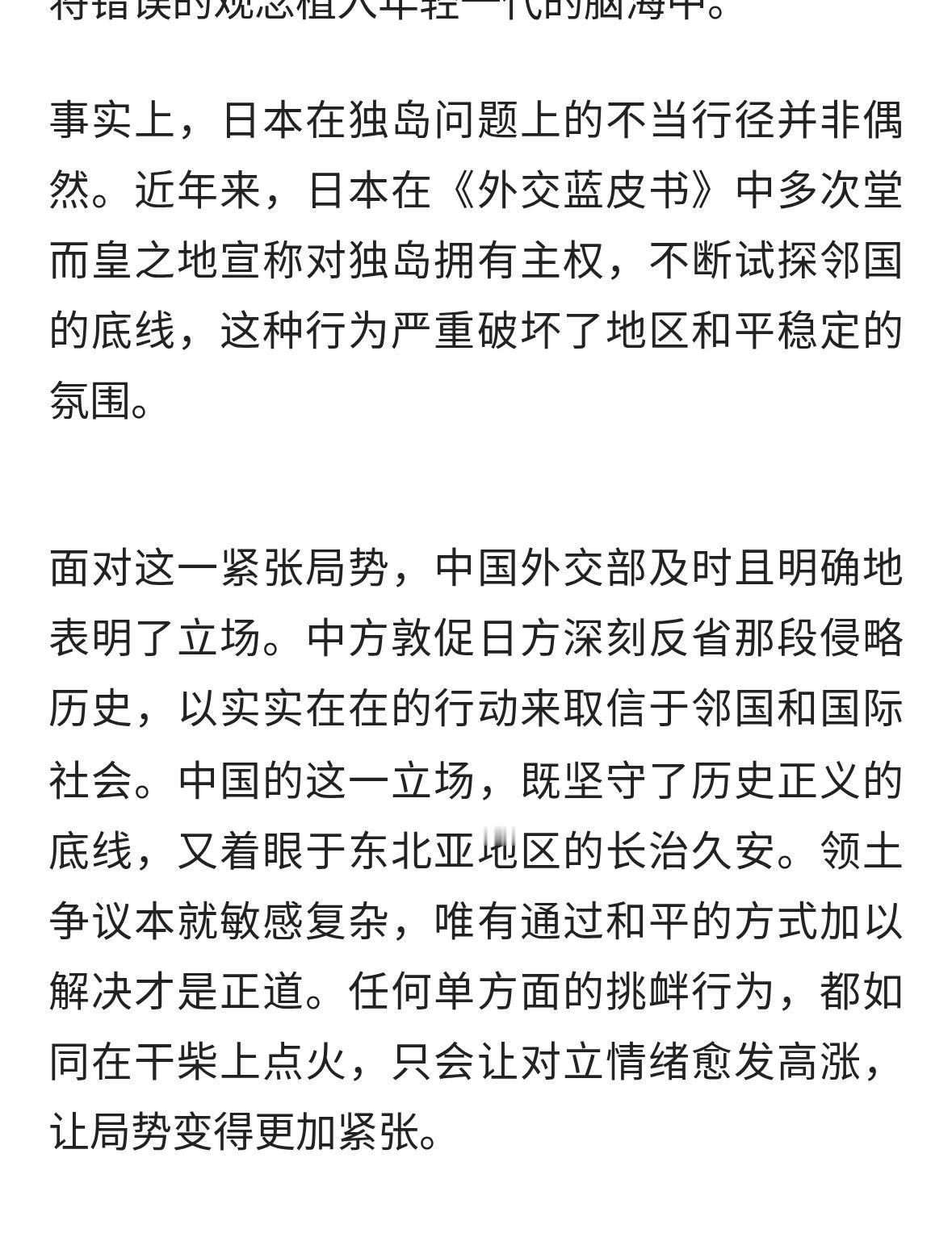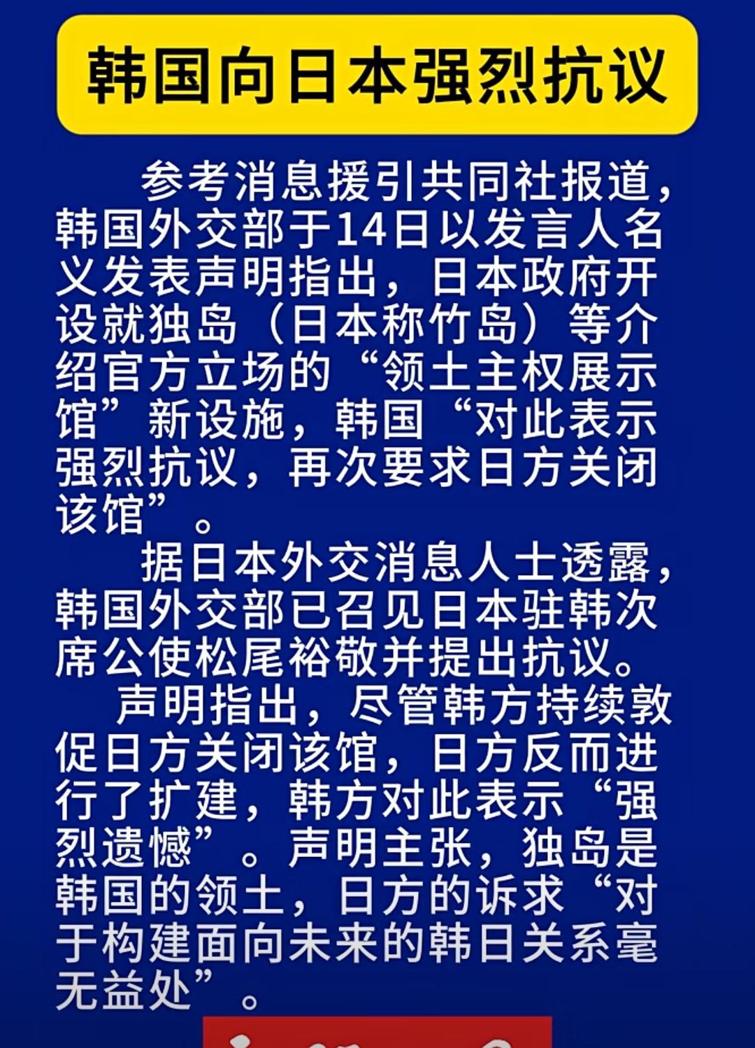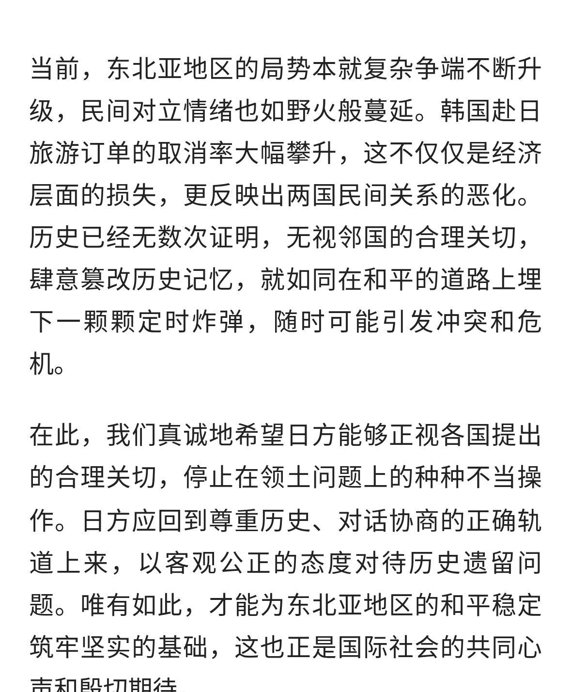 独岛又吵起来了,韩日剑拔弩张。 中方表态了,历史不能被歪曲。 这事儿不简单,背后是二战后的国际秩序。 别看是小岛,牵扯的是大原则。 谁占了谁就有理? 那得看历史怎么说。 中国这一句“正视历史”,等于给争端定了调。 不是不说话,是说了算数。 这事得靠谈判,不是靠嘴炮。 历史不会改,但未来可以一起写。 别把老账翻来覆去, 得让事实说话,别让情绪上头。 这岛不大,但影响不小, 谁也别想单方面下定义。