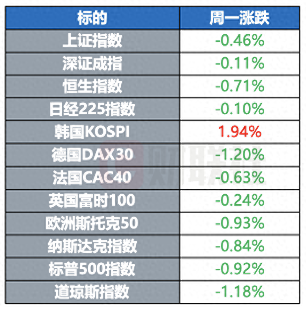 全球主要指数周一普遍下跌,美股三大股指集体收跌,道指跌超1%。