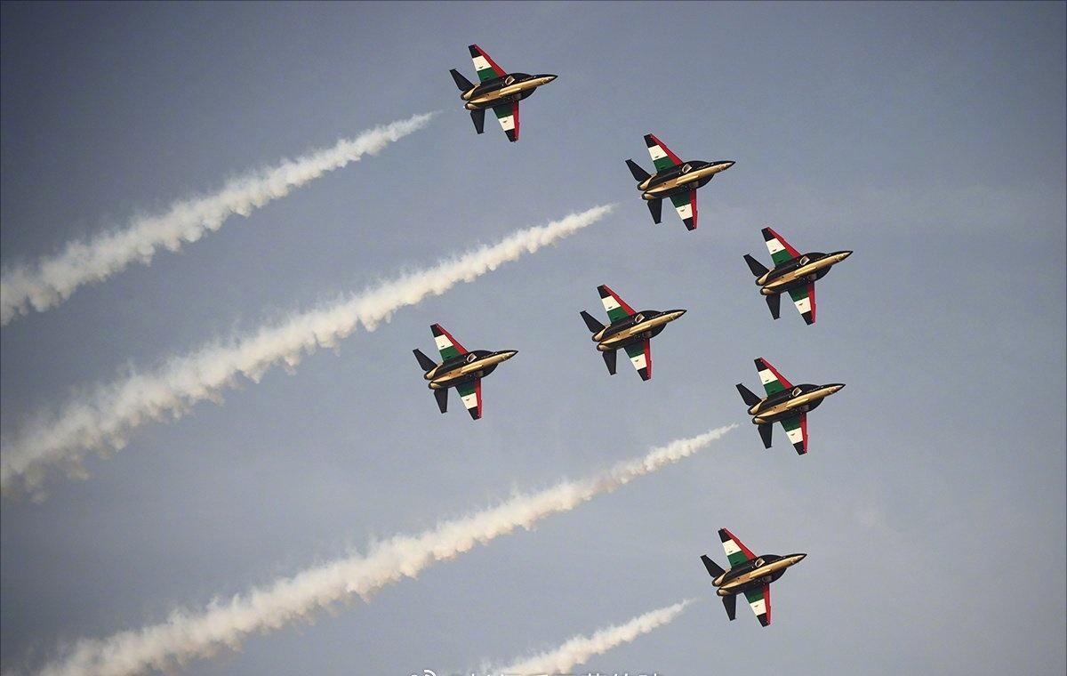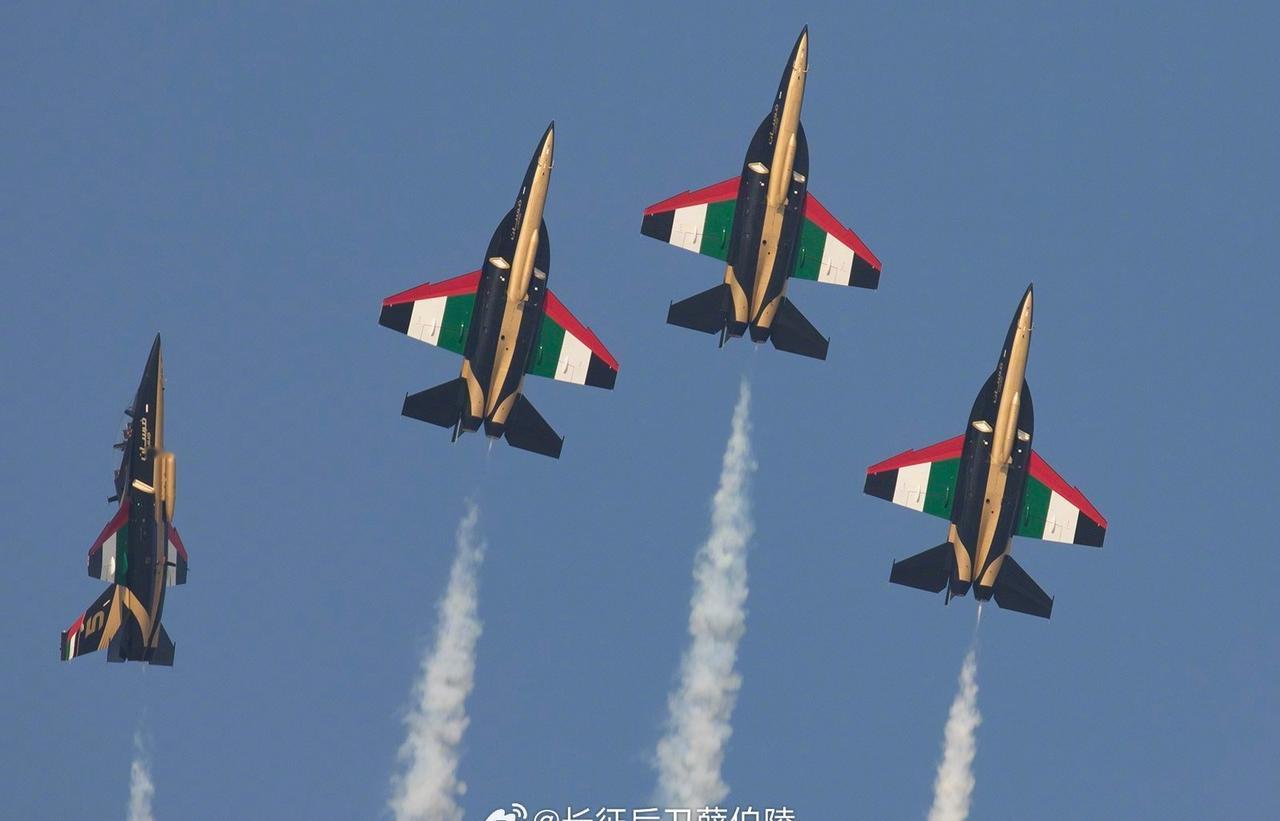 迪拜航线2025,阿联酋空军雄狮飞行表演队全面换装中国洪都产的L-15喷气式教练