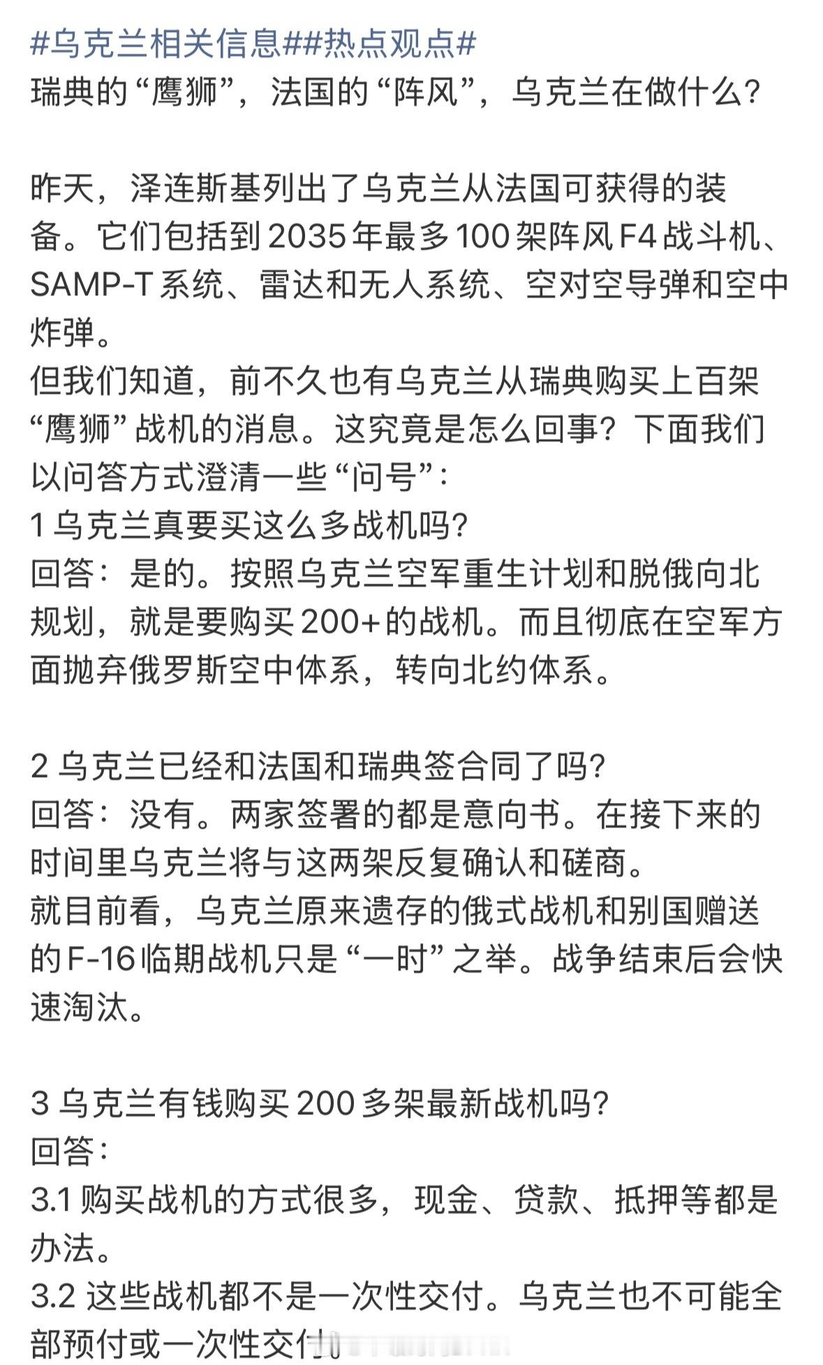 乌克兰从瑞典法国买这么多战机,为的是在战败时送给俄罗斯吗?