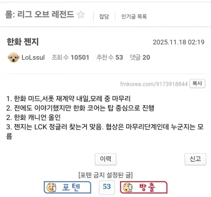 直播吧11月18日讯曾在11月12日爆料T1续约Doran、接触Peyz的韩网小道昨晚凌晨发文,原文翻译如下: