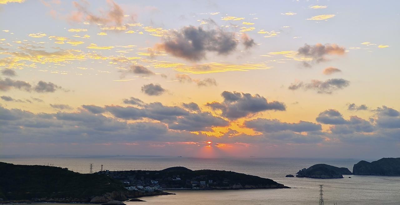 这会儿的太阳啊,像腌出油的咸鸭蛋—— 云彩是打散的蛋清,晚霞是流心的蛋黄, 把晾在阳台的被单都染成橘色绒毯。 楼下王姨收起麻将桌,老伯拎着鸟笼晃悠, 只有我攥着这把光, 像小时候偷藏水果糖—— 明知留不住,偏要等月亮来掰开手指。 您那儿的夕阳像什么?快来晒晒!