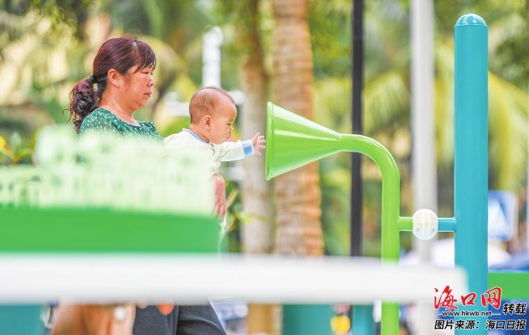 “公园里环境美、步道平整、健身器材齐全,老人在这里可以锻炼身体,小朋友在这里可以安全玩耍。”11月17日,海口椰海大道与新大洲大道交叉口的椰新园内,市民张京一边照看正在嬉戏玩闹的孩子,一边向记者细数家门口这个“小公园”的好处。