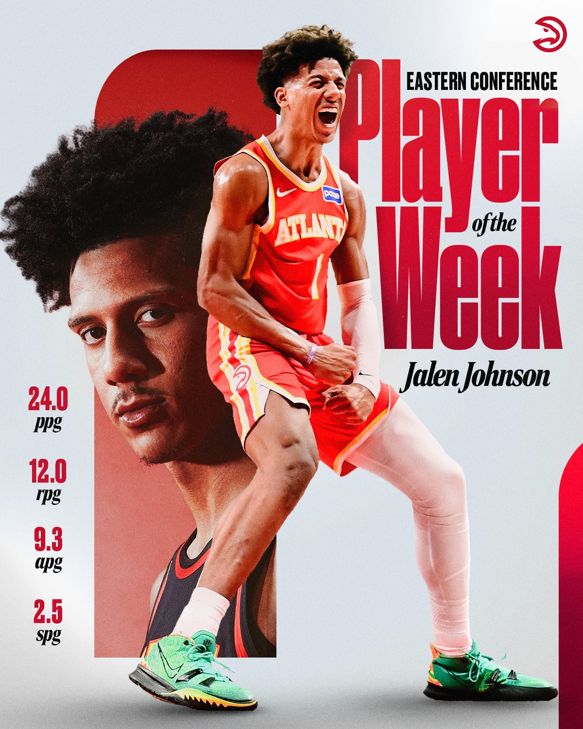 根据之前的报道,杰伦-约翰逊当选为上周的东部最佳球员。