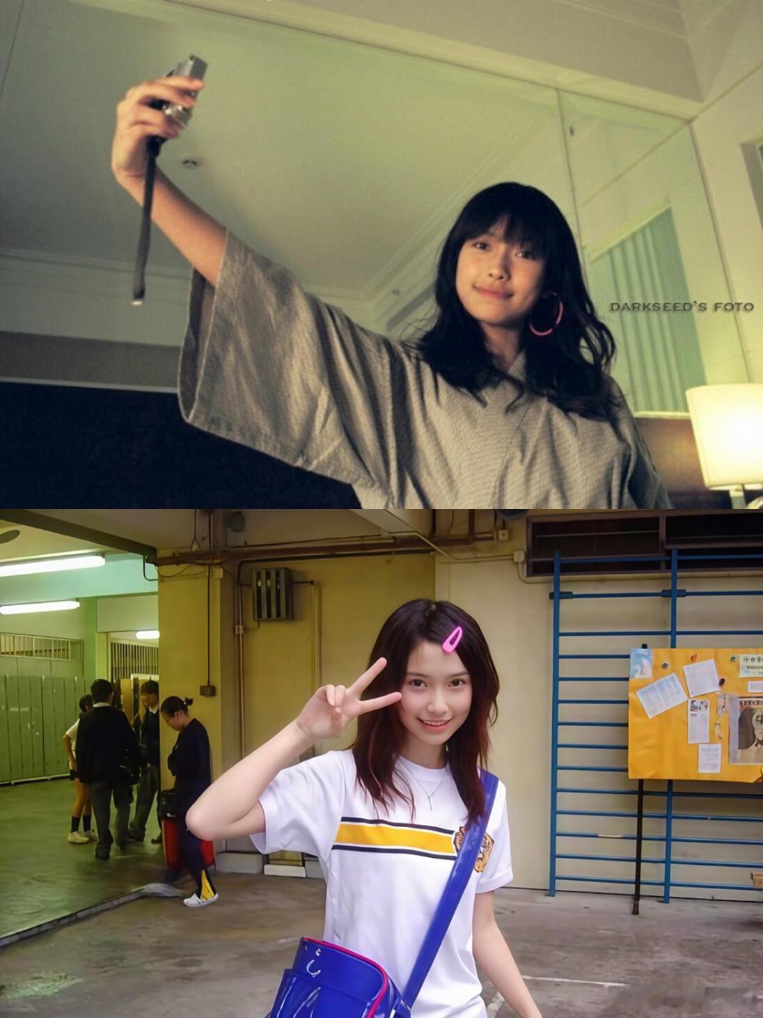 高中时的Angelababy,天生好骨相,青涩却亮眼,看得出来正在整牙。明明是底