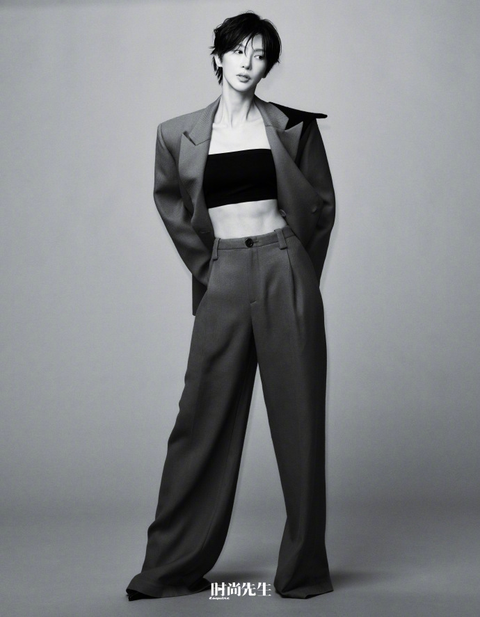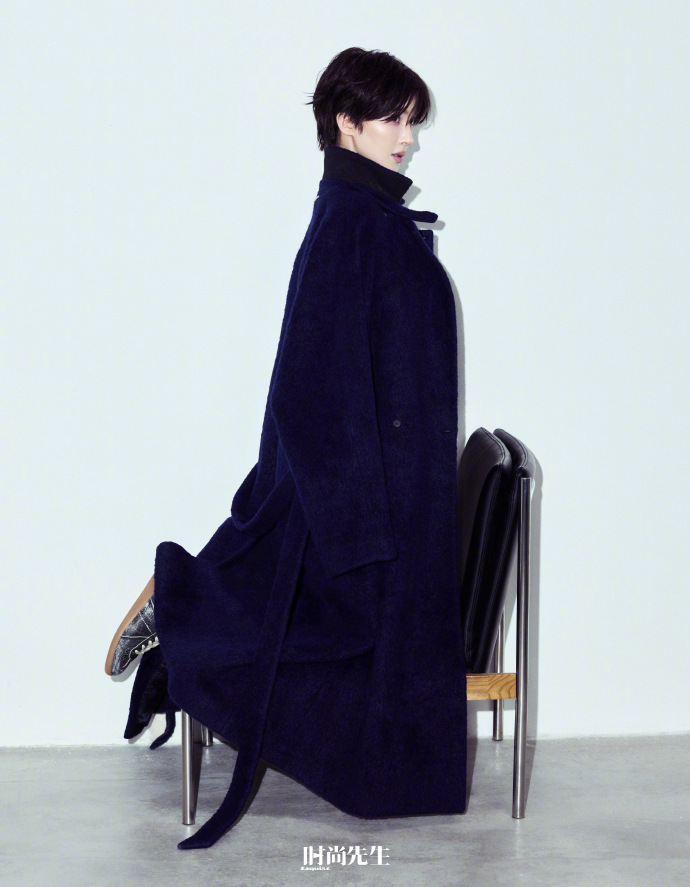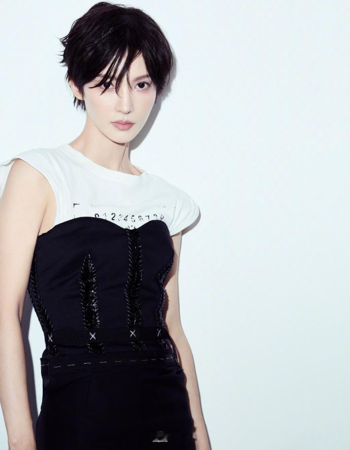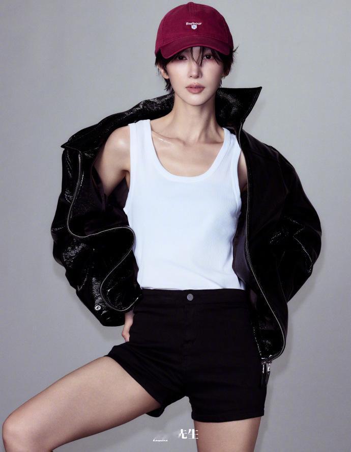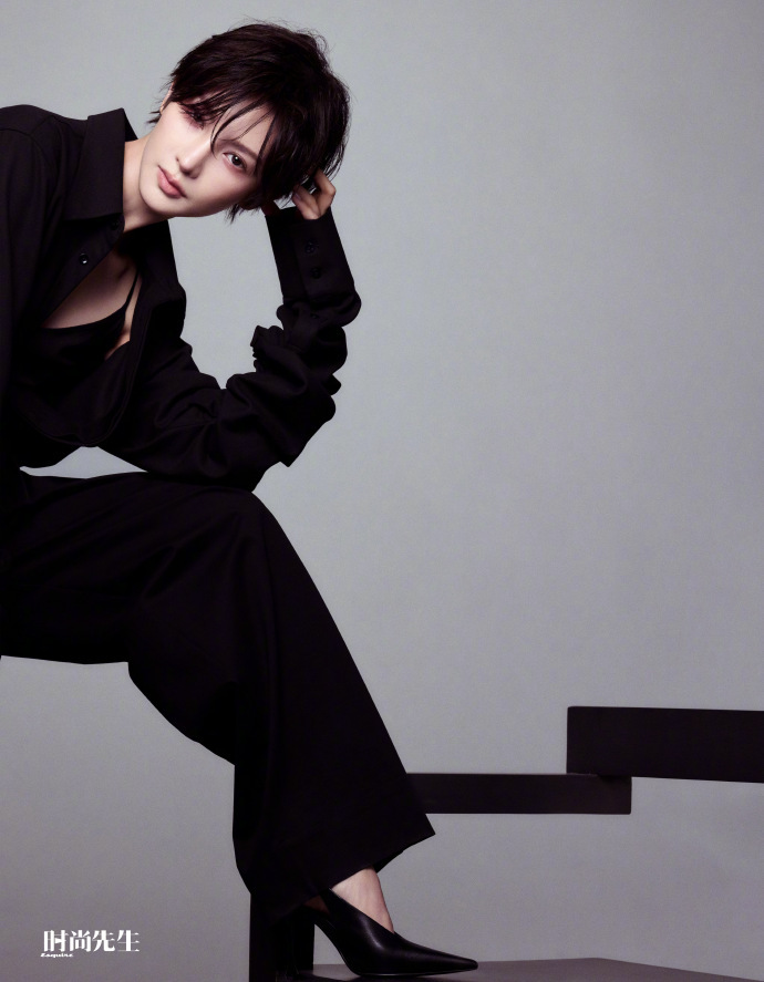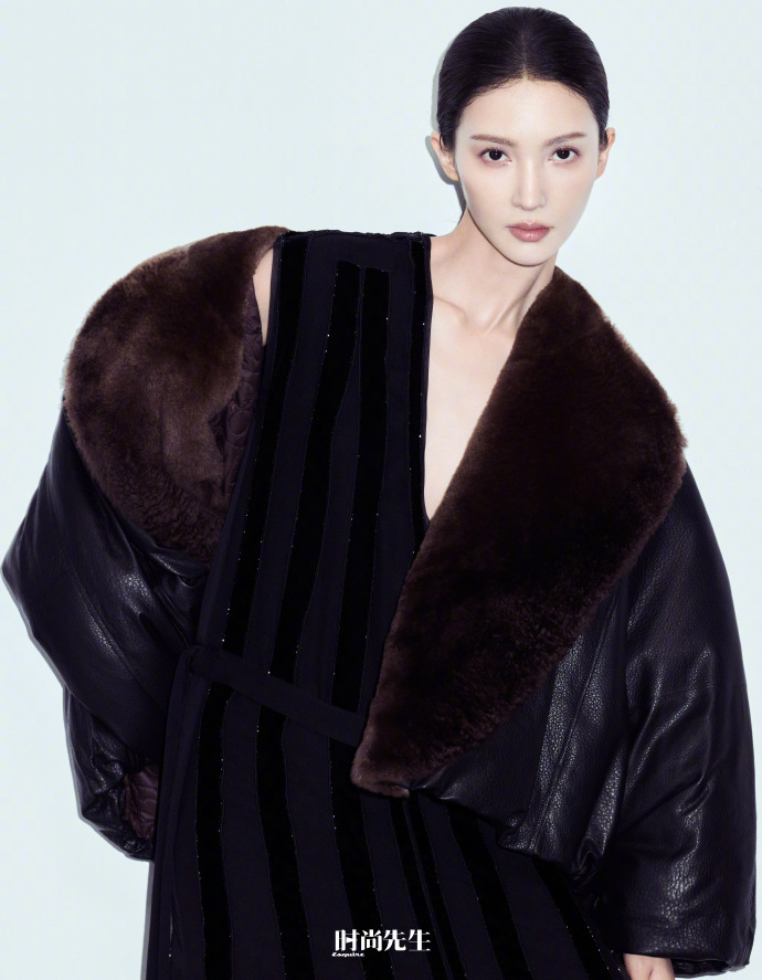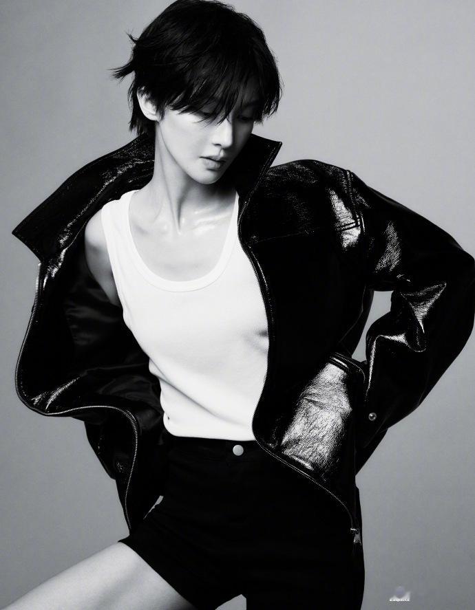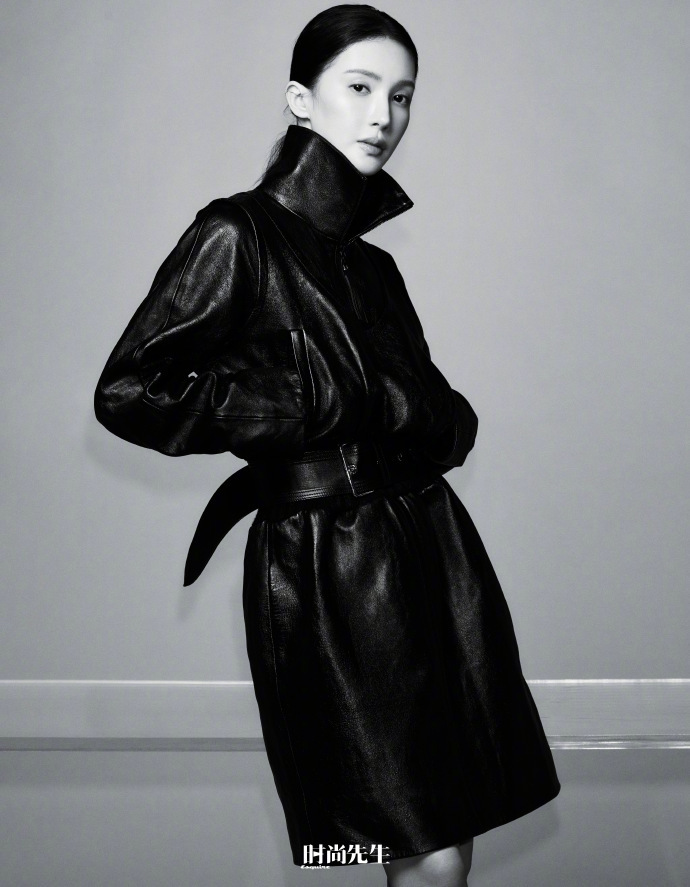 金晨好特别的一组!当她透过镜头凝视你时,有种疏离又危险的魅力,大喜的时尚表现力实