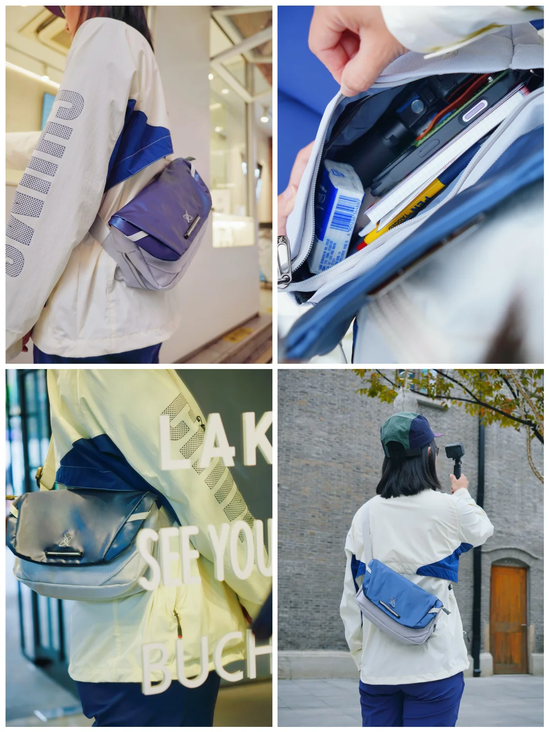 挎包的容量约2.5L,主仓扩容后可达3.5L,内仓有分层收纳系统,可以放置一台运动相机和小开本笔记本,以及耳机、眼药水等一些随行edc,完美匹配我的出行需求👌
