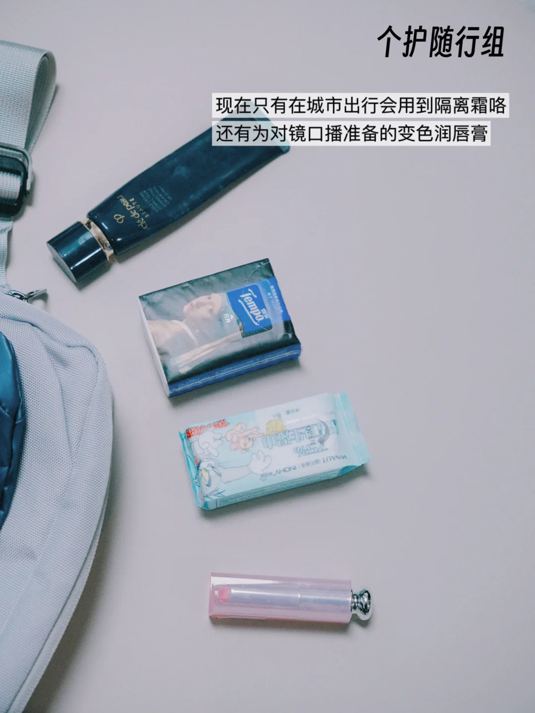 眼药水、纸巾、口袋湿巾、耳机、充电宝、唇膏、隔离霜等。