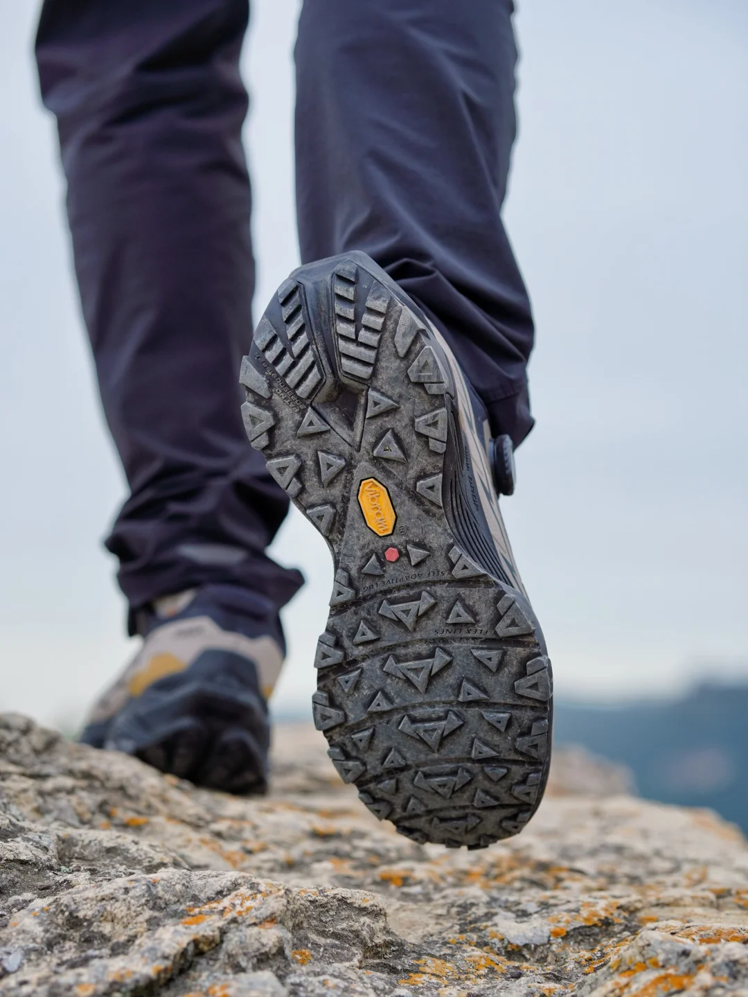 全掌Vibram Megagrip湿地止滑大底+4mm深的鞋底花纹,就像给脚底装了“越野轮胎”。