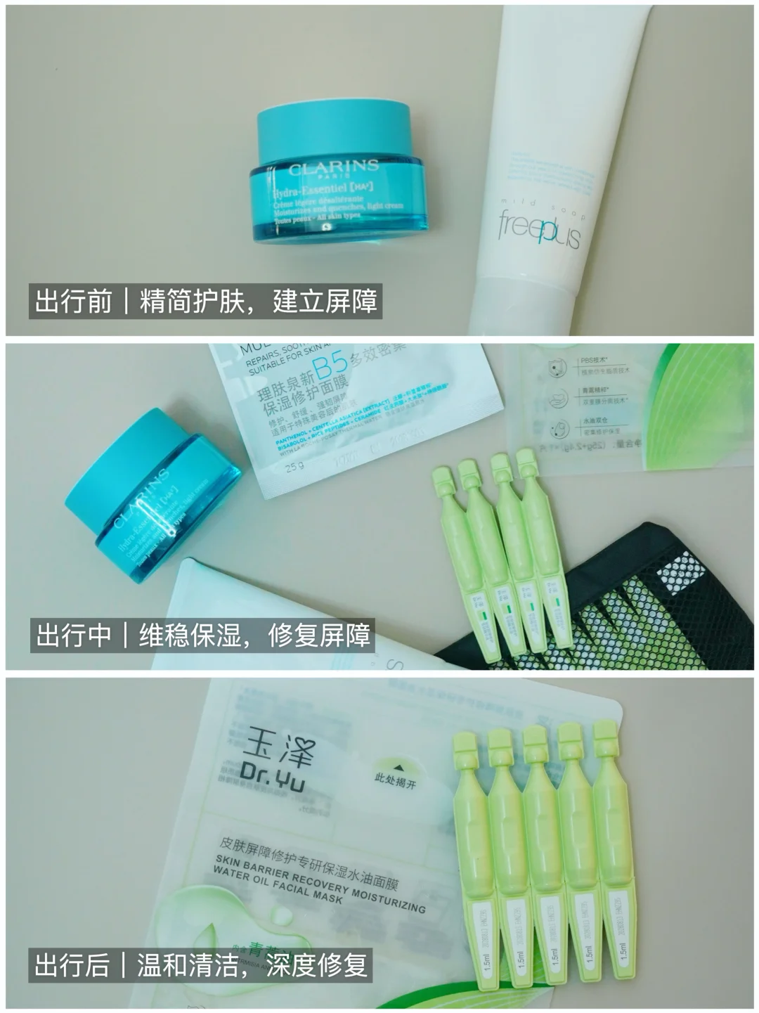 从出门前做好皮肤屏障养护,到出行过程中的防护与维稳,再到结束行程后的深度修护♻️