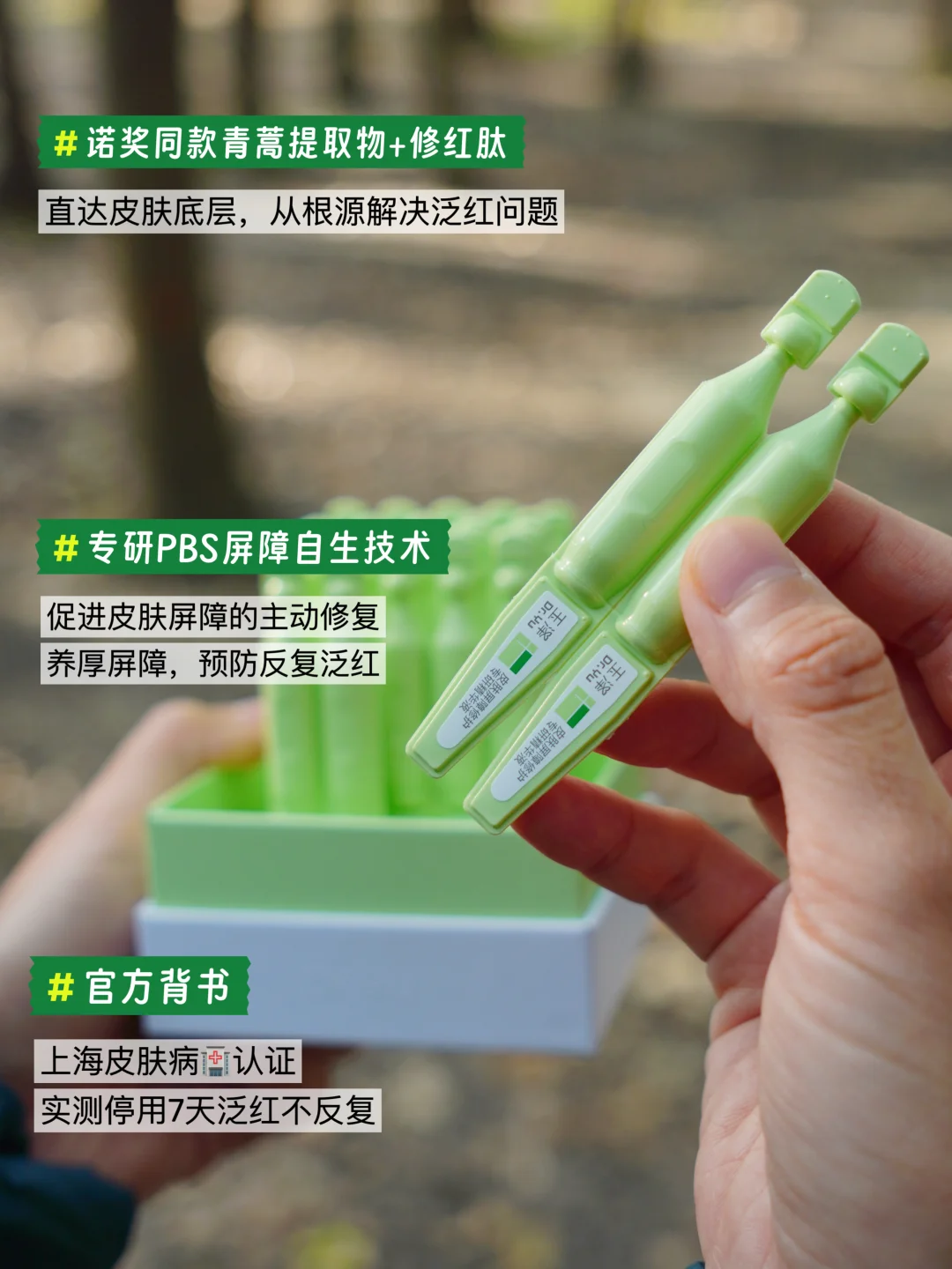 它的主要成分是诺奖同款青蒿提取物+修红肽,能够直达肌底“精准灭火”,就算白天被寒风吹了一整天,用后都能修复回来!主打一个快速解决泛红问题,不让脸红过夜!
