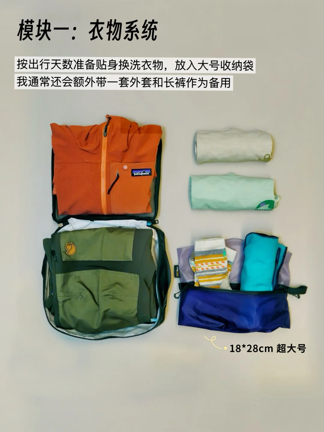 [烟花R]分享我们是如何按以下六大模块轻松完成行前的打包和背包收纳: