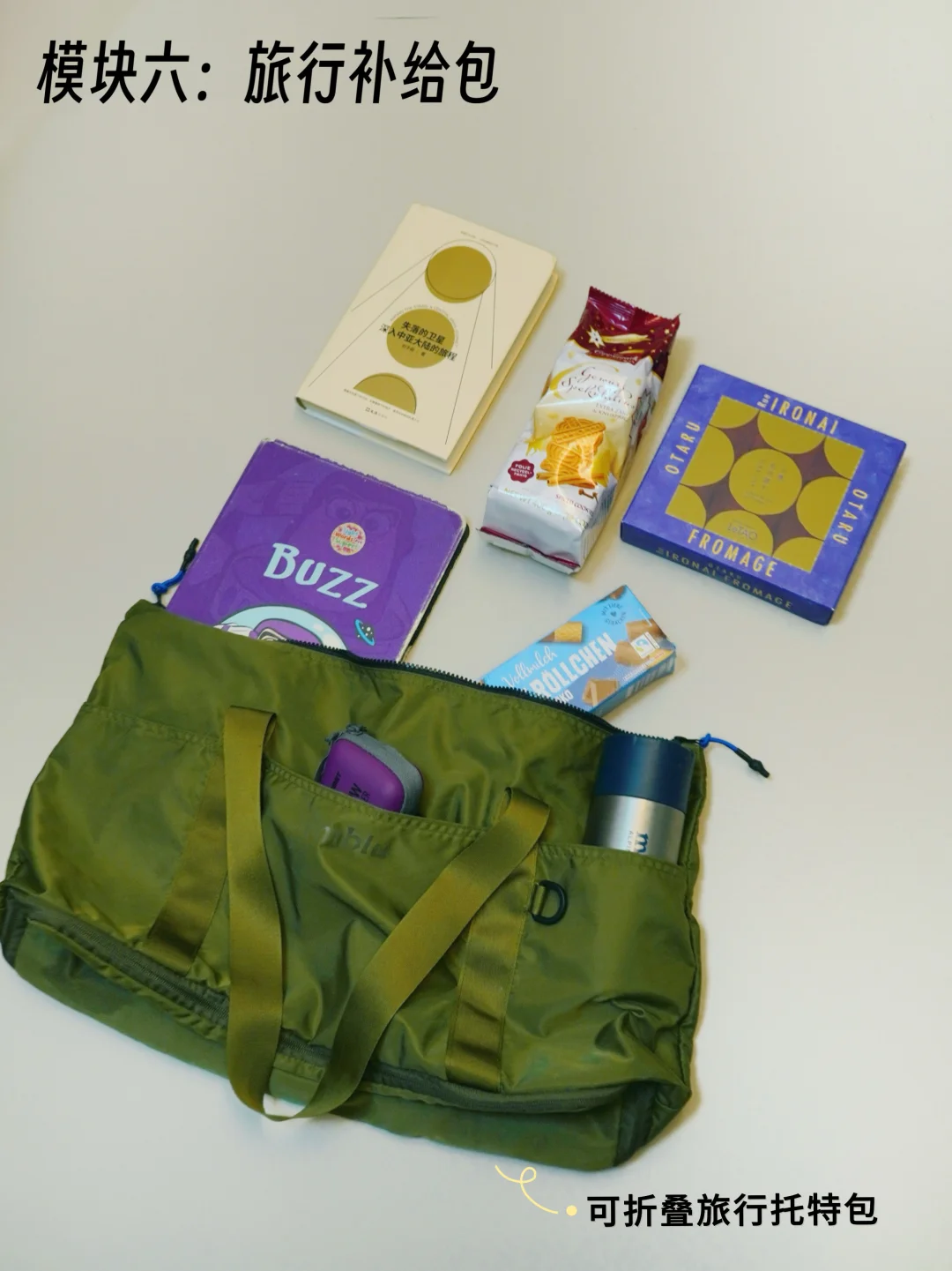 准备一个可折叠的托特包,用来装在免税购买的伴手礼,还有其他需要随身带上机的物品。