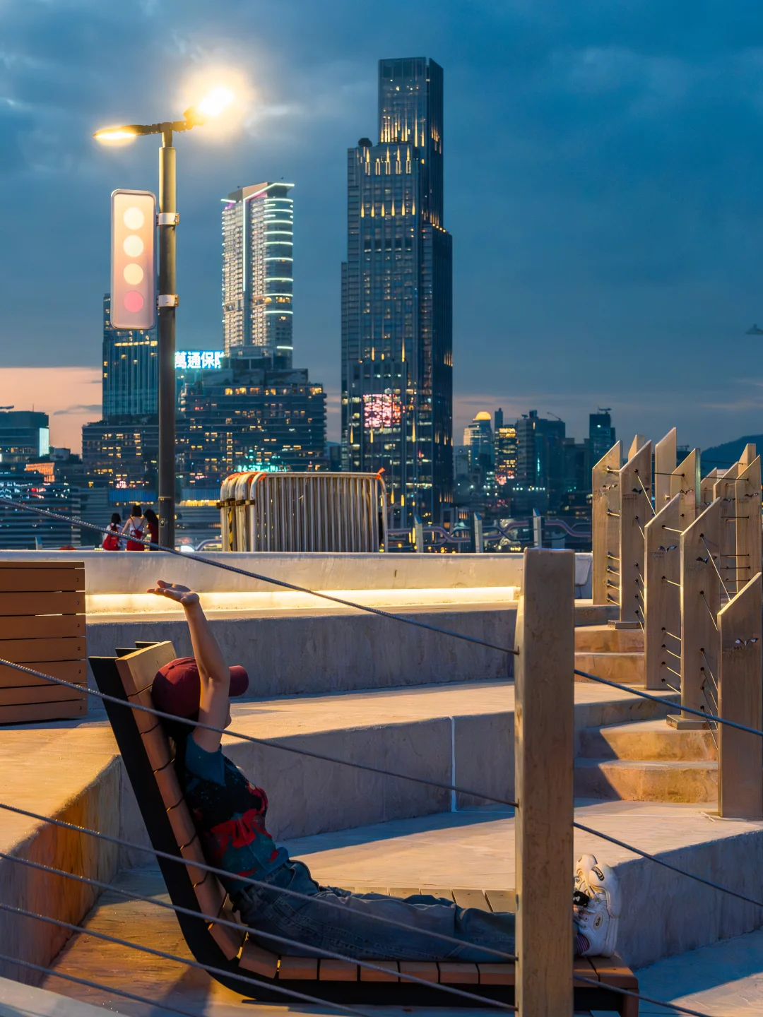 图❸ 在湾仔临时海滨花园的海边长椅上发呆歇脚,真的超级惬意~