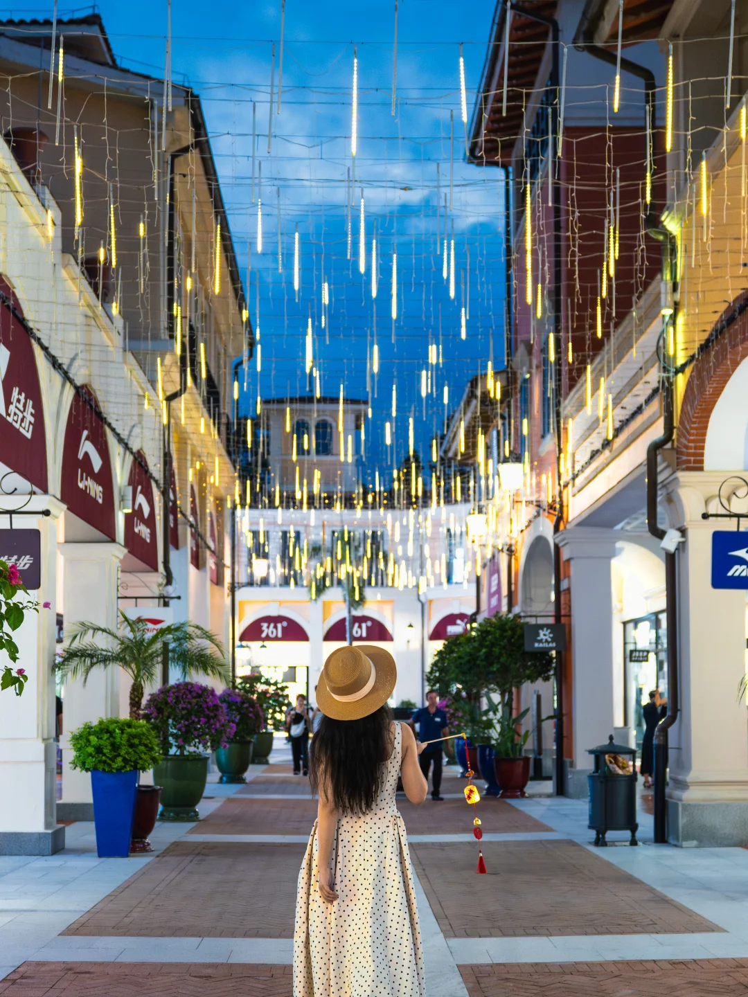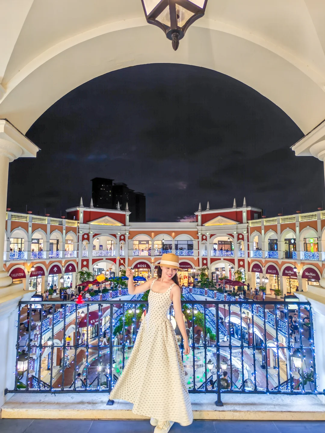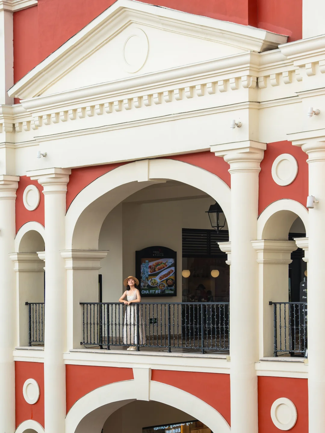 ❷ 航海家广场是小镇里拍照zui出片的区域了~上到2楼俯拍整个广场的全景、楼下的喷泉和意式街道,氛围感拉满,真的很像出国度假了!