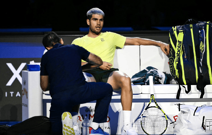 虽然阿尔卡拉斯已经从都灵赶到博洛尼亚赛场,核磁共振结果显示,他的右大腿肌肉有明显的肿胀状况,如果继续出战戴维斯杯决赛的话,可能会有肌肉撕裂的风险。