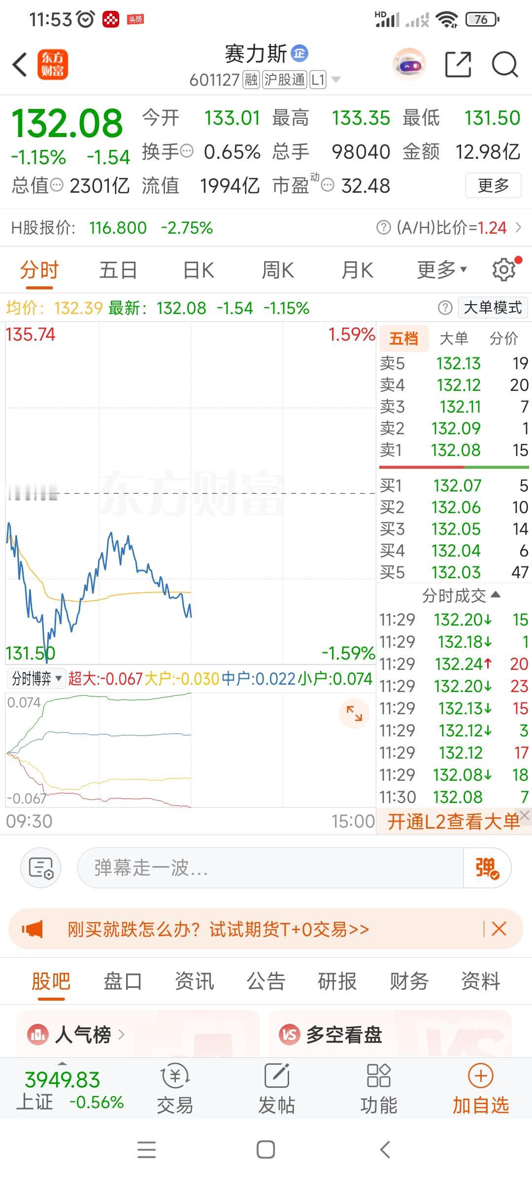 哎,愁死我了!我买的赛力斯华为股票到底怎么回事啊,一直不停地往下跌,港股和大股一