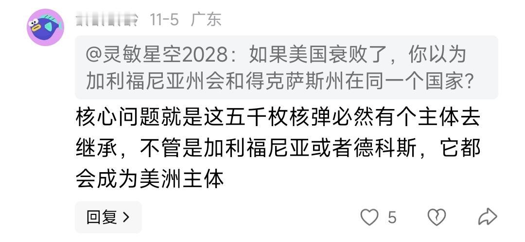 这就是信仰。设想到老美解体那一步了,还认为解体前强无敌,解体后依然强无敌。那他还解体个啥。想着核武全部集中到继承主体州上,如果某个州强到让其他州把核武交给他,有这压制力解体个什么劲?还指望到解体那份上时,欧白会移民过去去老美帮忙提升白人占比。拜托,那时美白都要跑路了。