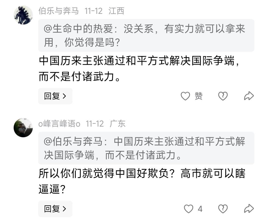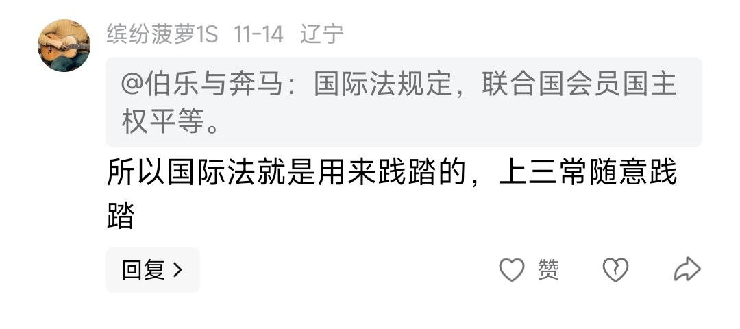 不谴责日本说要武力介入中国,反而说中国如果用武力对付武力入侵是没有法理的,还给中国扣上践踏国际法的帽子。某拨款省,真是下了死力气搞舆论。它们不会真的假也得这样就能让中国放弃抵抗让它们肆意侵略吧?