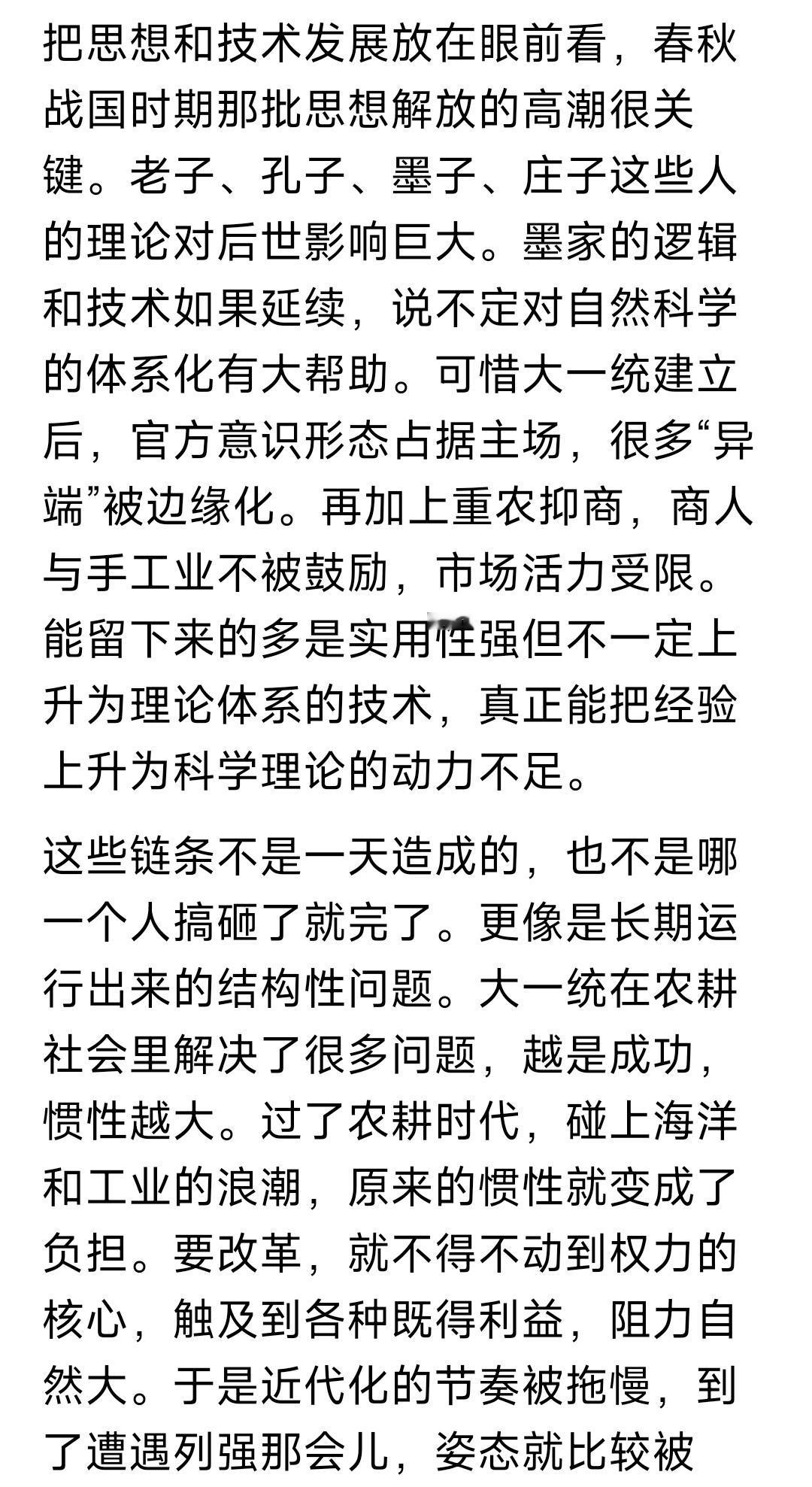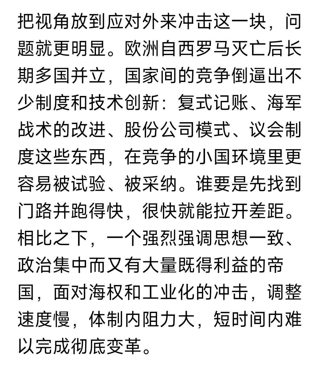 借用学术讨论之名,强调大一统的坏处。这分裂国家的心思,都快不带掩饰了。各种还拿欧洲做例子证明分裂比大一统好。那么,为什么在分裂欧洲里面的英法是下两常,而统一的中美俄是上三常?还谁说,鼓吹这个的,觉得欧洲比美国强?那为什么欧盟被特朗普抽着玩?