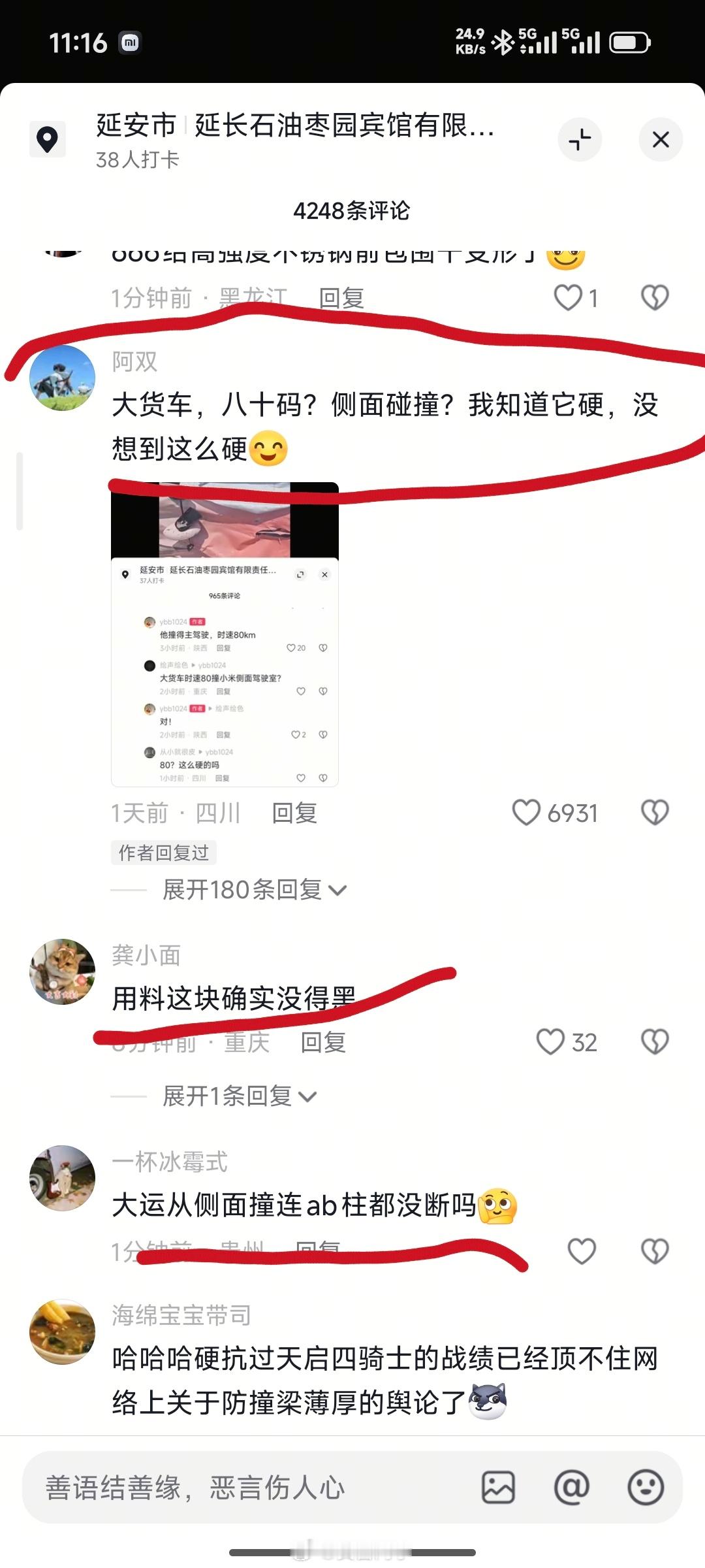 你看这位小米车主就是完全不懂流量,好在网友们是真懂啊!这辆小米SU7被大卡车撞击到了主驾驶的位置,当时大卡车80码的速度,但是小米SU7的A柱依旧完好,车内无人员受伤,随后又下定了一辆小米YU7。网友说建议这位小米车主,不要发大卡车的照片,这样流量不就来了吗?让网友误解小米车子又出车祸了,非得发大卡车,还非得发A柱完好!😂看了一圈评论区,其实还是明白人更多的。“能硬抗半挂的车舆论”、“你看,你只发小米流量早破万了,非要发大卡车”、“大运从侧面撞连ab柱都没断吗”、“大货车,八十码?侧面碰撞?我知道它硬,没想到这么硬”还有之前赤峰的小米YU7车主被水泥搅拌车也是正面撞击,车内人员安全等等。小米汽车无论你怎么黑,用料厚道这块确实是真黑不动。无论是之前王垠老师的耐久测试,还是最近的小米SU7拆解视频细节,小米确实在用料这块远比同段位的车型要实在很多。这个月小米汽车的总交付量估计就要突破50万大关了,50万名车主的口碑认证,车好不好,目前没看到车主出来喷的。有些连四个轮子车都没的,天天叫的最欢!