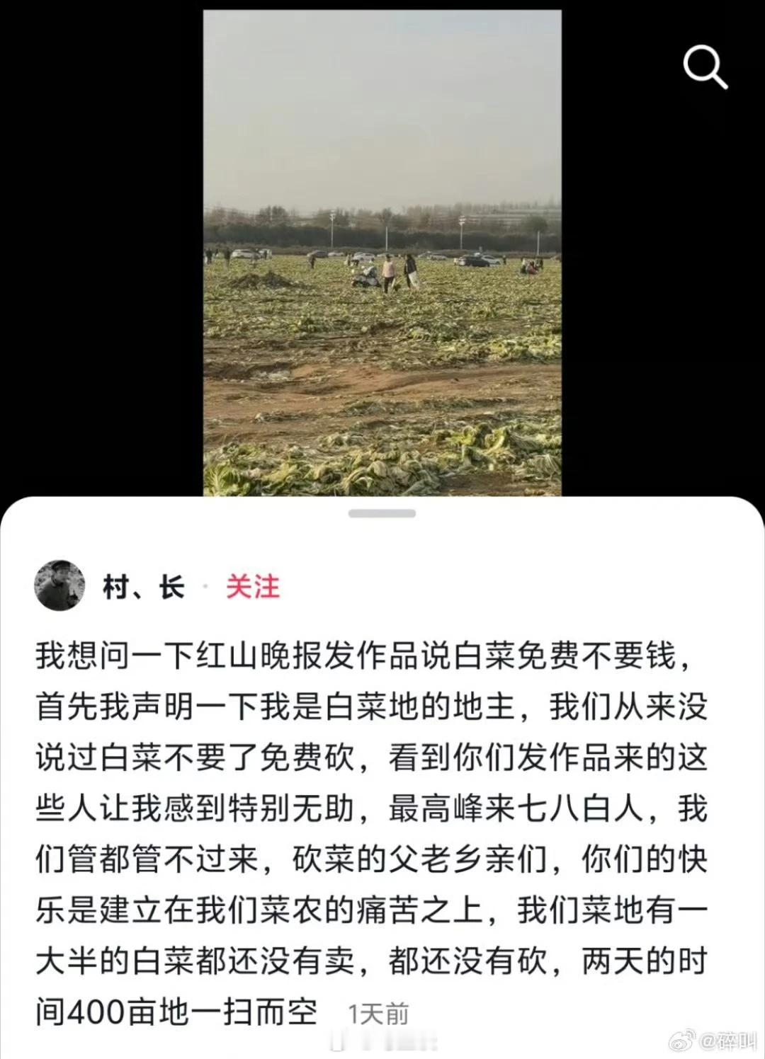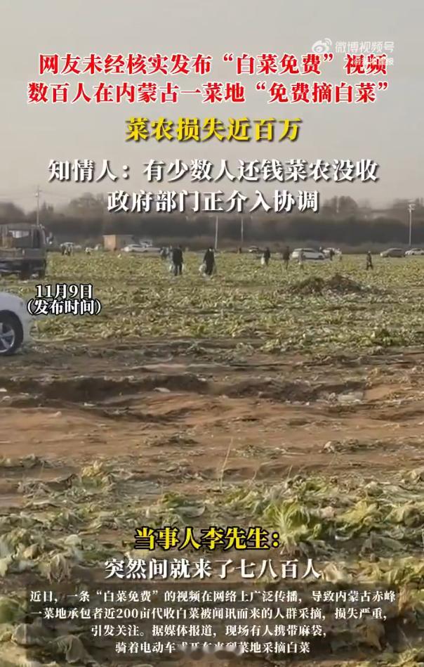 网民传播的谣言、媒体的错误报道,导致二百亩白菜遭哄抢,让菜农损失达百万…早说了,在农村哪有什么“捡秋、拾秋”,剩在地里的都是留着过冬的。也不知道这股风怎么流行起来的…该怎么办?造谣的、传谣的、媒体编审一条线、短视频平台多一体处罚了吧。