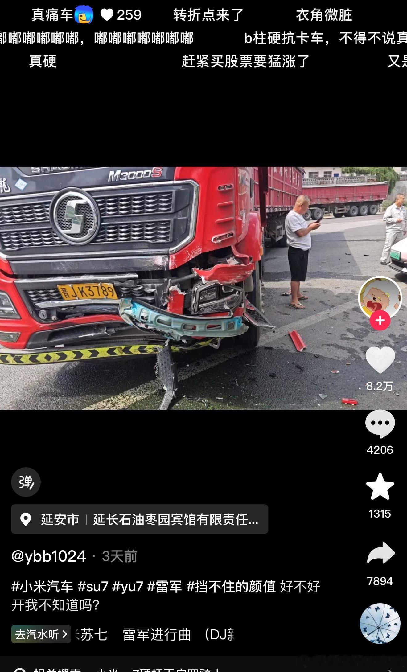 看看小米SU7的实战表现,时速80大货车侧面撞击,SU7直接扛住了伤害,这么硬的车身表现,也是让车主直接又下定了一台小米的车。小米汽车这种正面的消息直接没流量,大家仔细搜搜或者回想一下,小米汽车在这波舆论之前,在各种中保研、中汽研碰撞安全实测以及车主自己的实战案例中都是经受住了考验,不不要人云亦云被带着节奏走,不如独立思考明辨是非。我始终认为,只要自己规范安全驾驶,不超速飙车不酒驾,专心开车并且对驾驶有足够的敬畏之心,小米这样够硬的车身和被动安全配置,是有能力保护车上人员安全的。