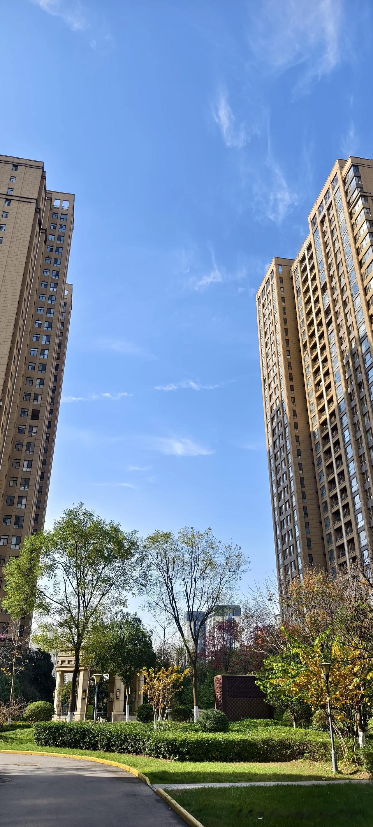 我的今日状态:😁轻松愉快 我这里的天气:☀️晴天 这两天天气晴朗,大清早站在小区,抬头看天空,碧空如玉。拿起来相机稍微一拍,一张绝美的风景图片便应运而生[ok]