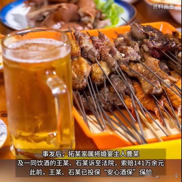 内蒙古,曹某结婚,邀请了小伙伴拓某、石某来参加婚宴。席间,拓某喝了4杯半白酒,新郎曹某正常敬酒,并没强行劝酒。婚宴结束之后,拓某跟石某一起离开。途中,王某打电话联系拓某,让他过来吃烧烤。于是,拓某跟石某又再次来到王某的酒局。三人吃烧烤、喝啤酒,直到凌晨。拓某回家之后,次日清晨被发现猝死在家中。 红星新闻11月17日报道了这则新闻。经过检查发现,拓某的死因是:心源性猝死。由于他并没有基础疾病,因此跟饮酒存在较大关系。 一切都归咎于“饮酒”二字。这一天,曹某结婚,宴请了好友拓某跟石某。席间,拓某喝白酒,新郎曹某也礼貌性地过来敬酒。 整个酒席期间,拓某大概喝了有4杯半白酒,婚礼结束之后,拓某跟石某二人一同打车离开。途中,二人的朋友王某又打来电话,邀请二人过来吃烧烤。 趁着兴致,拓某也没有拒绝王某,于是直接前去赴约。过去一看,烧烤也准备好了,啤酒也上桌了,三人对饮,好不热闹。 第二场酒局结束之后,拓某、石某二人各自回家。拓某凌晨时分才到家,躺到床上就呼呼大睡。谁知道,第二天一大早就出事了,家人发现拓某猝死在床上。 家属赶紧拨打了120急救电话,可惜为时已晚,送到医院的时候发现,拓某早就停止了呼吸。经过检查确定,拓某死于病原性猝死。 根据以往的体检报告,拓某的家属提出,他之前身体很好,并没有任何基础疾病。这次的意外,完全就是因为喝酒导致。 于是,拓某的家属,把新郎曹某、好友石某、王某全都上诉了,他们参与了酒席、共同喝酒了就需要对拓某的死亡负责。 拓某的家属要求他们赔偿141万元,经过一番审理,最后梳理出各自的责任。 对于曹某的责任认定:作为婚礼的组织者、邀请者,就需要对拓某的安全负责。但是曹某作为新郎,办酒席这是正常的人际交往行为,但是他并没有强行敬酒、劝酒,只是没有适当提醒、劝阻。因此,曹某需要对拓某的死亡承担1%的赔偿责任。 对于石某的责任认定:作为两场酒席的参与者,需要对饮酒者进行善意提醒,作为同桌饮酒者,跟拓某之间就产生了特定的权利和义务关系,需要提醒、劝阻,明知拓某已经在婚宴上喝了4杯白酒,甚至还继续赶下一场酒局,因此需要承担5%的赔偿责任。 对于王某的责任认定:王某没有参与婚宴,但是后期主动联系拓某喝酒。王某明知道拓某的酒量,知道他已经喝了不少白酒,但仍然继续劝阻拓某喝啤酒。因此,王某需要对拓某承担3%的赔偿责任。 最后判定为,曹某需要赔付13900元,王某需要赔付41731元,石某需要赔付69553元,保险公司需要赔付111200元。 1.曹某作为新郎,宴请拓某来参与宴席,期间曹某没有劝酒,但是拓某喝了4杯半白酒,后来引发猝死,曹某是否也需要承担一定的责任? 根据《民典法》规定,作为婚宴活动的组织者,有义务在合理限度内保障宾客的安全义务。包括对宾客的饮酒行为进行提醒和劝阻,如果没有及时提醒导致宾客过量饮酒、并且突发状况,组织者需要承担一定的赔偿责任。 曹某作为新郎,组织了这场酒席,需要对宾客拓某负有安全保障义务,如果没有有效防止拓某过量饮酒,就会被认定为存在一定过错,需要承担1%的赔偿责任。 2.王某明知道拓某已经参与了婚礼酒席,但是仍然继续邀请他来进行第二趴酒局,同饮者石某作为两场酒席的参与者,他是否也需要承担责任? 根据《民典法》规定,作为两次酒局的参与者,需要对同行人的饮酒行为负有提醒、劝阻和照顾的义务,如果没有尽到安全保障义务,同饮者也需要承担赔偿责任。 石某作为两场酒局的参与者,第一场酒局结束之后,让拓某又参与了第二次酒局,并且二人也再次饮酒,石某没有及时劝阻、并没尽到保障安全的义务,因此,作为同饮者,石某需要承担5%的赔偿责任。 共同喝酒,虽然并非主要劝酒者,但是也需要对席间的朋友负责,既要注意、又要提醒、量力而行,否则极有可能会面临法律风险。 看完本案,大家都怎么看待同席饮酒这件事呢?