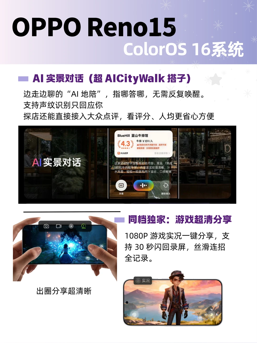整体看下来,Reno15 的外观质感、影像玩法和系统体验都达到了一个很均衡的点,既好看又好玩!