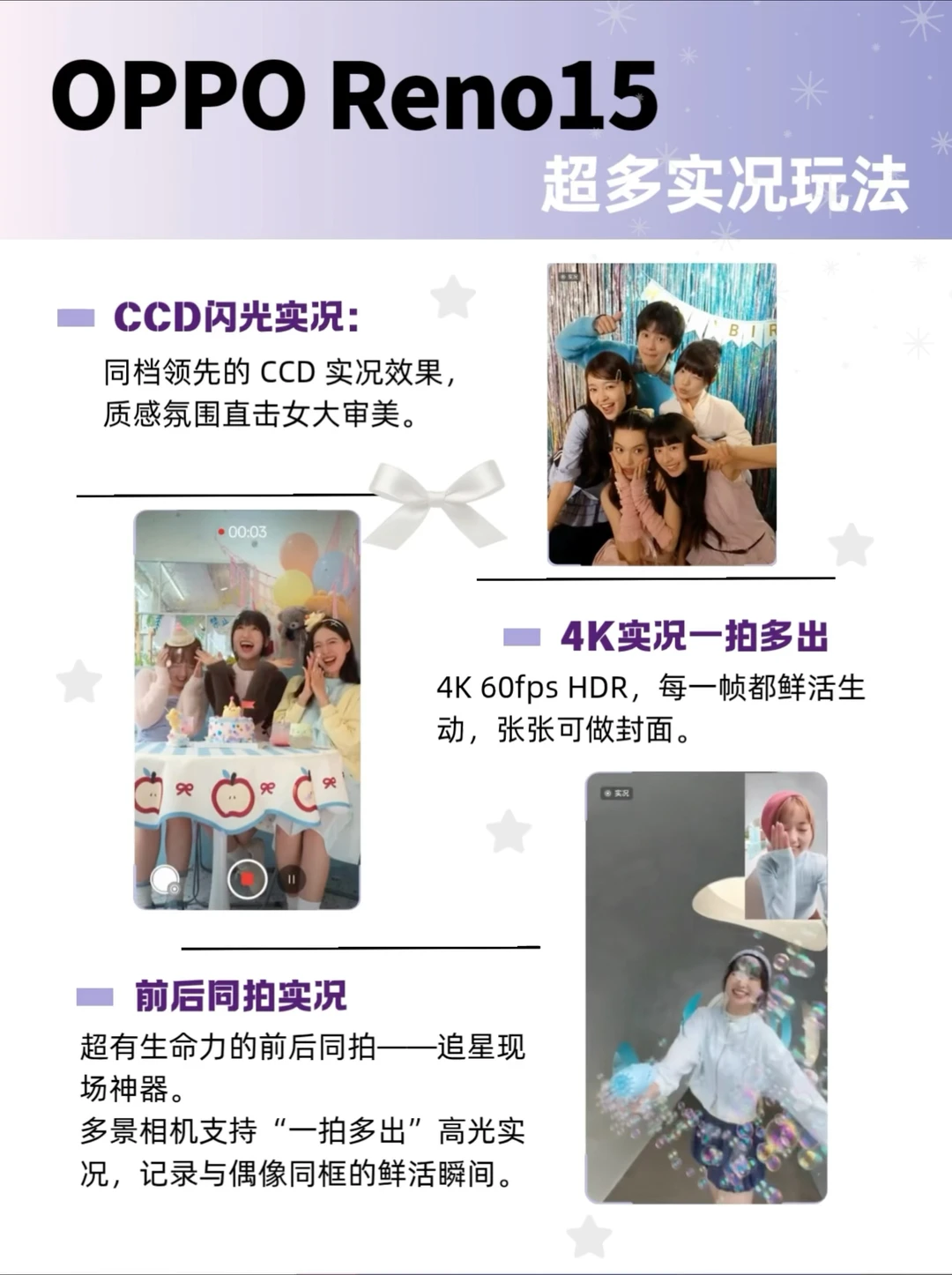 不得不说现在的手机设计真的越来越懂女生啦!不管是精致的星光蝴蝶结背板,主打的实况影像玩法 ,还是外观和功能都被狠狠吸引住!